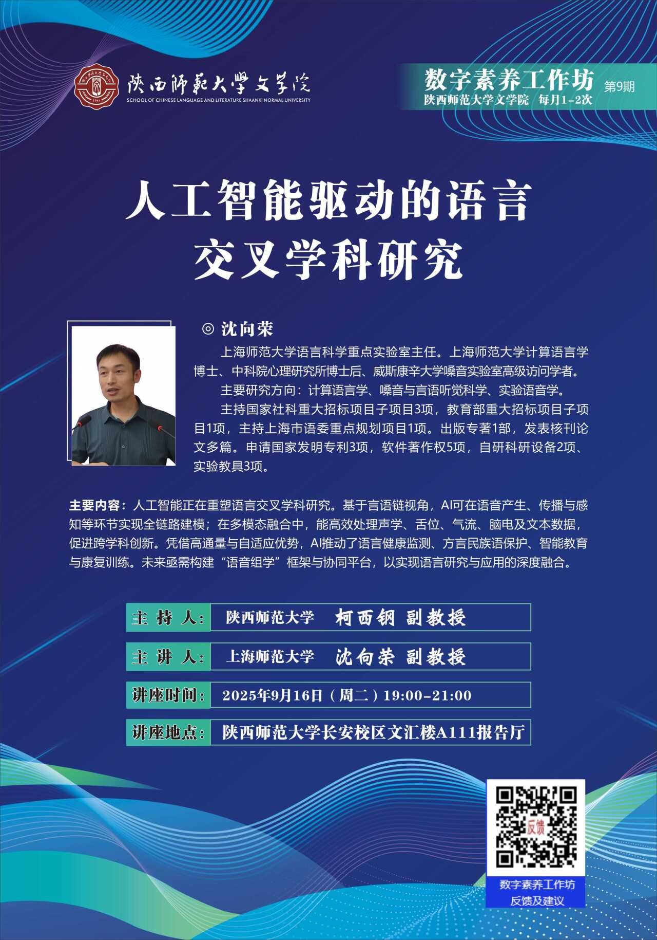 (通讯员:黄瑞玲)2025年9月20—21日,全国汉语方言学会第二十三届年会在安徽芜湖举行。会议由全国汉语方言学会与安徽师范大学主办,安徽师范大学申博SUNBET和国家语言文字推广基地承办,吸引了来自全国高校和科研院所的90余位专家学者参会。公司语言资源开发研究中心邢向东教授、黑维强教授和黄瑞玲助理研究员参加了本次会议。(黑维强、邢向东、黄瑞玲) (邢向东教授作大会报告) (邢向东教授作大会报告)邢向东教授作了题为《论词调所反映的关中方言的历史层次》...