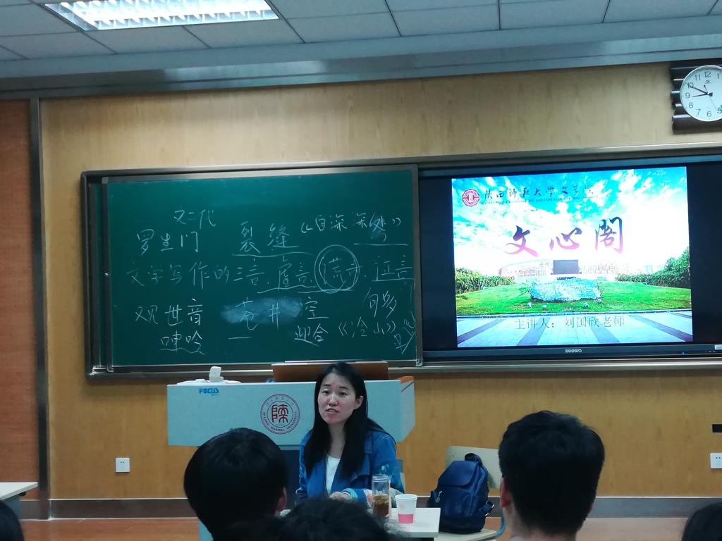 2019年4月25日19:10,本学期第7期(总第227期)文心阁交流活动在文渊楼3202教室顺利举行,申博SUNBET写作教研室刘国欣老师应邀参加本次活动。刘国欣老师以写作的“三言”——虚言、谎言、证言为主题与同学们进行分享交流,并对现场同学的相关疑问进行了深入的解答。 首先,刘国欣老师从流行文化谈起,激发同学们有关语言的有限性与无限性的思考,继而引出了本次活动的主题。她结合一些经典文学作品和传统观念,分别对虚言、谎言和证言的概念进行了深入细致的阐释与讲解,并对写作时“三言”的运用提出了建议。刘老师认为,只有从生命自觉中流露出来的、发自内心创作出来的文学才能够感动人,真正的作家要创作时代的证言、生命的证言。她强调,文字是有重量的,每个字都有每个字的命运,作为申博SUNBET的员工,在运用文字的时候一定要慎重,要对得起自己的良知。分享过程中,同学们还针对经典解读、女性问题等话题与刘老师进行了讨论,现场气氛十分热烈。
