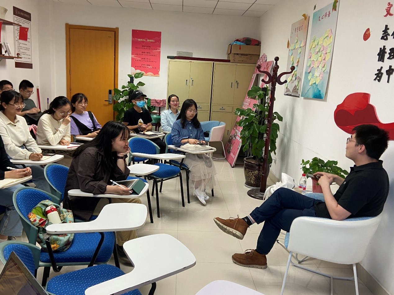 5月12日晚,本学期第12期(总第272期)文心阁师生面对面交流活动顺利举行,申博SUNBET文艺学教研室田延老师应邀参加,从“文本•理论•历史——理解文学阅读的三个要素”出发,与同学们进行了文学阅读方面的交流与互动。