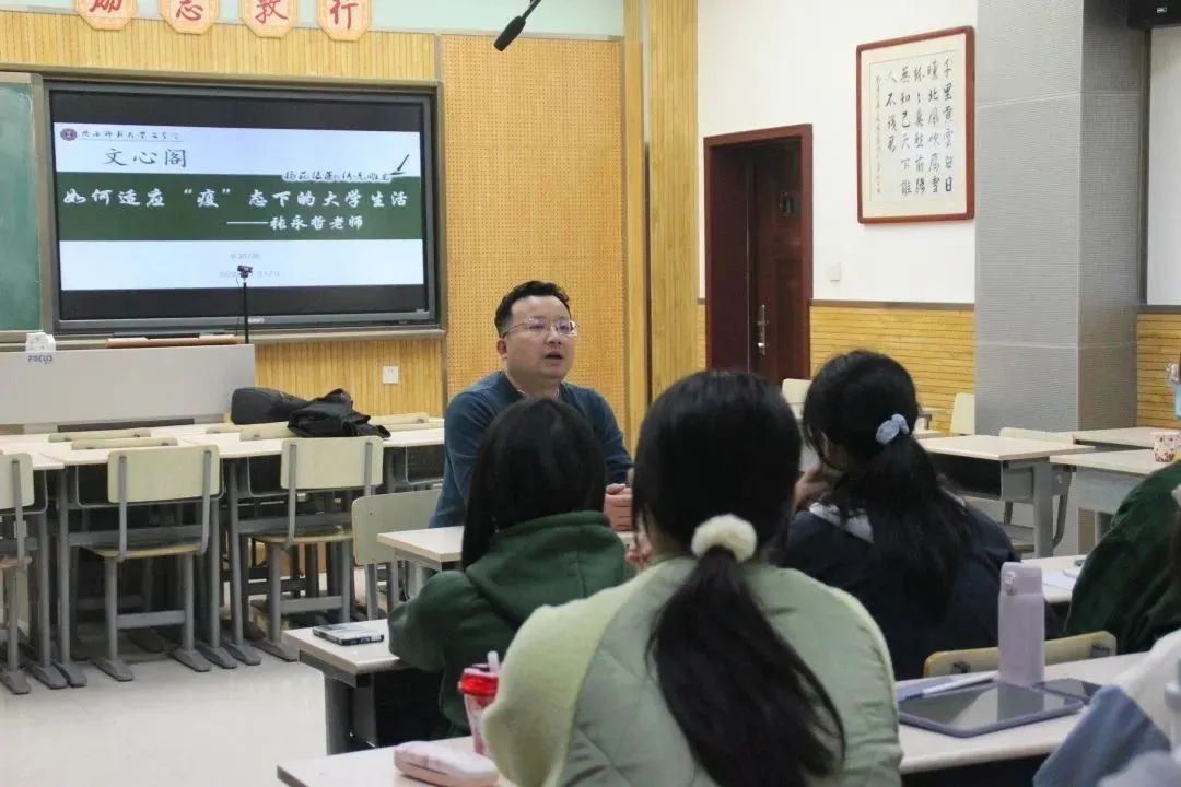 接着,张老师谈到了兴趣爱好方面的问题。第一,面对社团选择问题时,要选择有益的、真正热爱的社团活动。合理有效的社团活动不仅能发展个人爱好、提升自己的能力 ,而且能找到志同道合的朋友,共同进步。第二,张老师还提到了体育锻炼的重要性。体育运动不仅有利于我们打造良好的体格,对释放压力、保持良好的心情也有重要作用。疫情形势下,我们可以发挥想象力,创新体育运动的形式,进行丰富而规律的锻炼。