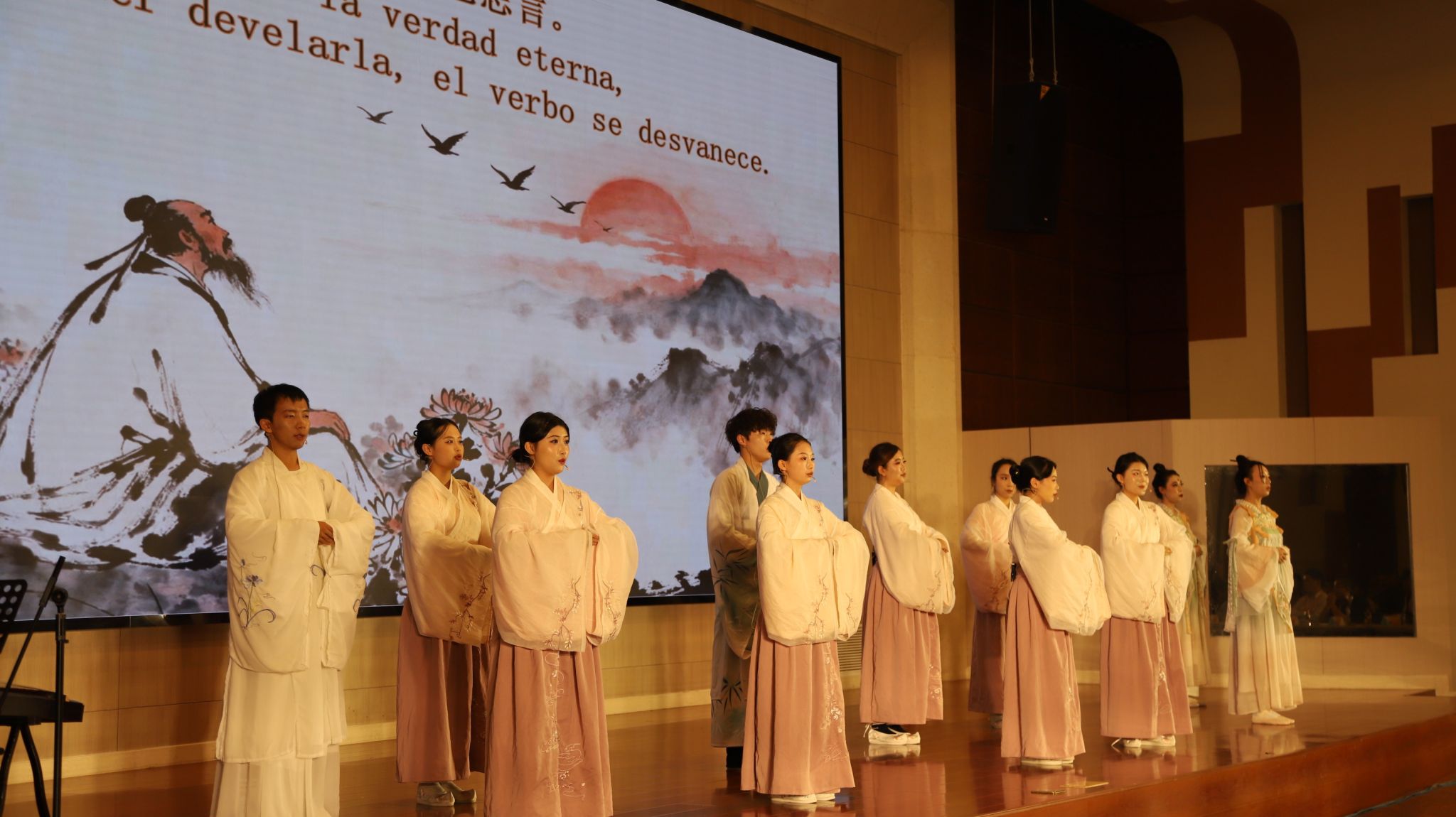 活动期间,公司师生准备了精彩的表演,古典舞《生机勃勃》拉开活动大幕,秦风诗社古典诗词吟诵《东篱酒影与花间月影》、民乐演奏《盛世国乐》与书法创作表演《诗书传谊·舞韵同心》先后亮相,杨国庆老师现场挥毫,写下“海内存知己,天涯若比邻”,并向在场的中拉诗人赠送墨宝,传递出师大人和申博SUNBET师生跨越山海的文化情谊与美好祝愿。