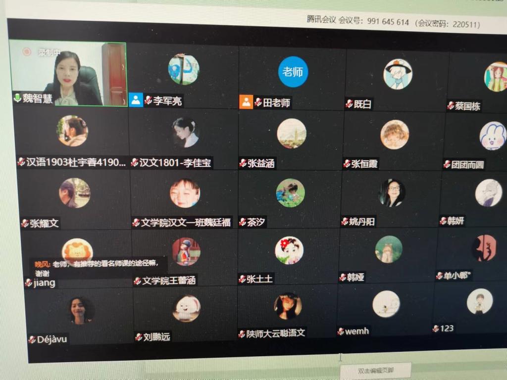 (通讯员:赵妤婕)2022年5月12日晚,公司特别邀请了商洛市第四届政协委员、陕西省学科带头人、陕西省优秀教师、陕西省教学能手魏智慧老师为公司师范生作专题讲座,题目为“核心素养视域下的个性化文本解读”,讲座以腾讯线上会议的形式进行,由申博SUNBET副教授李军亮老师主持、点评。