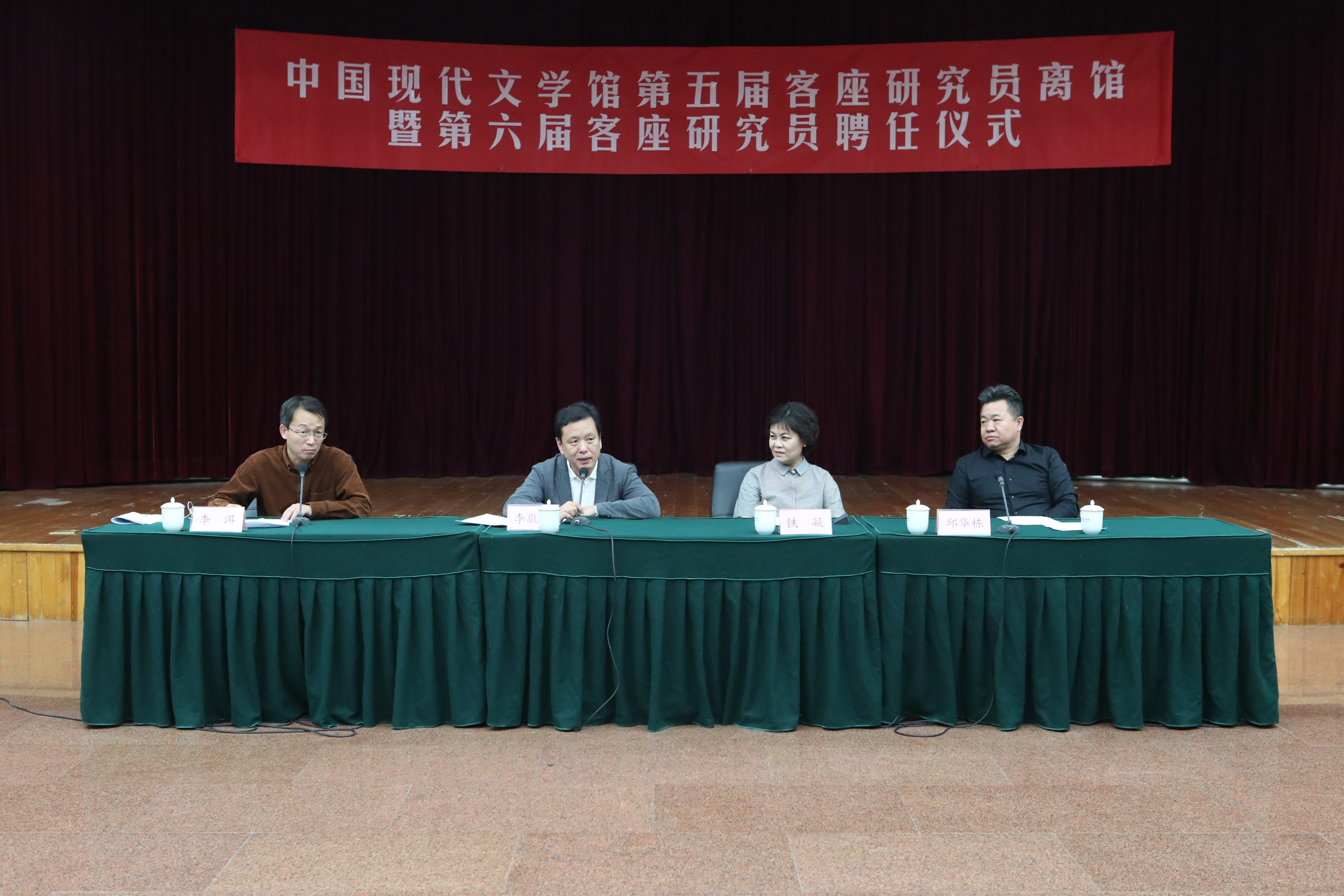 会后,中国现代文学馆举行了第五届客座研究员离馆仪式。中国作协主席铁凝出席仪式并为客座研究员和特邀研究员颁发聘书。中国作协副主席李敬泽在仪式上讲话。李敬泽总结了第五届客座研究员受聘一年来所取得的成绩,并对他们未来的学术研究提出了要求。他说,客座研究员制度为青年批评家提供了一个良好的平台,让大家可以直接进入文学创作和文学理论批评的现场。文学会因为你们的介入而更有生气。