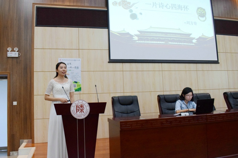 颁奖会上,公司团委书记辛田首先宣读了比赛获奖名单,刘方奇同学荣获一等奖,钮天植、陈昱成同学荣获二等奖,孟文强、仝龙伟、时铭秋同学荣获三等奖,刘婷、赵俭杰、马雅欣、张瑞雪、周斌、海丽等同学荣获优秀奖。之后,12位获奖同学一一上台,为现场观众介绍了自己的作品及其创作经历。这些作品或深情地抒发胸中抱负,或细致地描绘四季美景,或文学地表达人生感悟,展示了诗词的魅力和韵味,赢得了现场的阵阵掌声。接着,马克思主义公司辅导员宋飞朝有感而发,与同学们分享了自己所作的一首诗:“人生事事总难料,弹指一挥时又尽。犹问老天公不公,秋雨凄凄断人魂。”他认为,诗是活着的、有灵魂的文字。他祝愿同学们能够面朝大海,春暖花开,在最美的流年里遇见最美的古诗词。最后,公司辅导员秦亚坤总结发言。他提到,随着《中国诗词大会》、《朗读者》、《见字如面》等节目的热播,唐诗宋词的美进入了人们的视野,唤起了国人的诗心和对文学的记忆,他希望同学们都能多读诗,多创作,有诗词相伴的青春会更加灿烂。