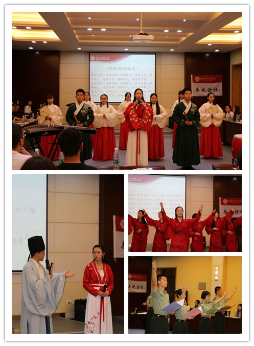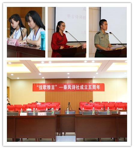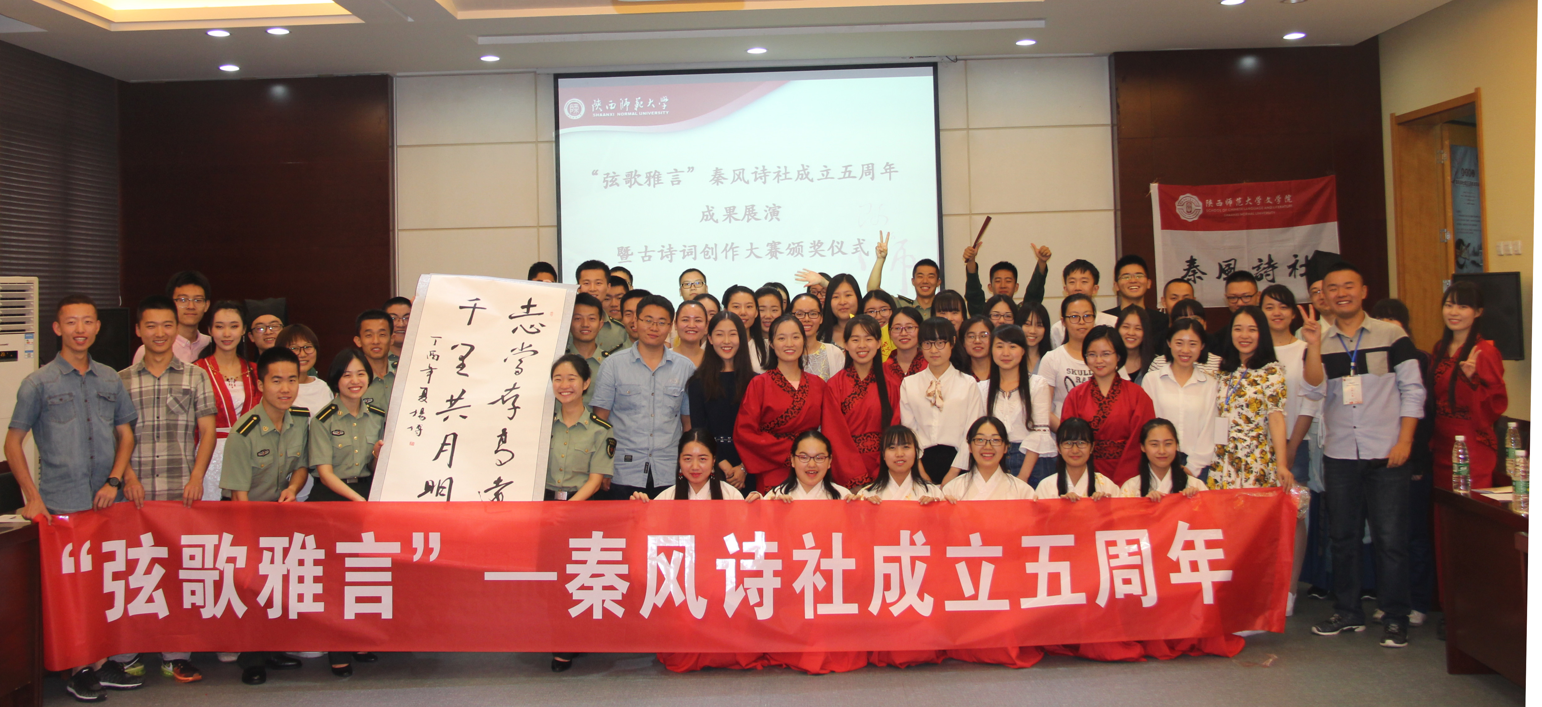 (通讯员:骆浩冉;摄影:肖迪 徐静 翟华明)为弘扬中华经典传统文化,丰富校园文化生活,6月3日下午,“弦歌雅言”——秦风诗社成立五周年成果展演暨古诗词创作大赛在长安校区文汇楼A段111室成功举办。来自第四军医大学、火箭军工程大学、西安交通大学、西北大学、西北工业大学五所高校的老员工社团代表受邀参加了此次活动,台湾辅仁大学东篱诗社、北京师范大学南山诗社、中南大学中华经典吟唱团等十所高校社团送上了视频祝福。公司经理张新科教授也送上寄语“期待秦风诗社继续推广吟诵涵咏,与西北学子共引诗情到碧霄”,秦风诗社全体成员参加了活动。