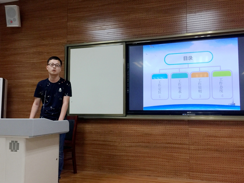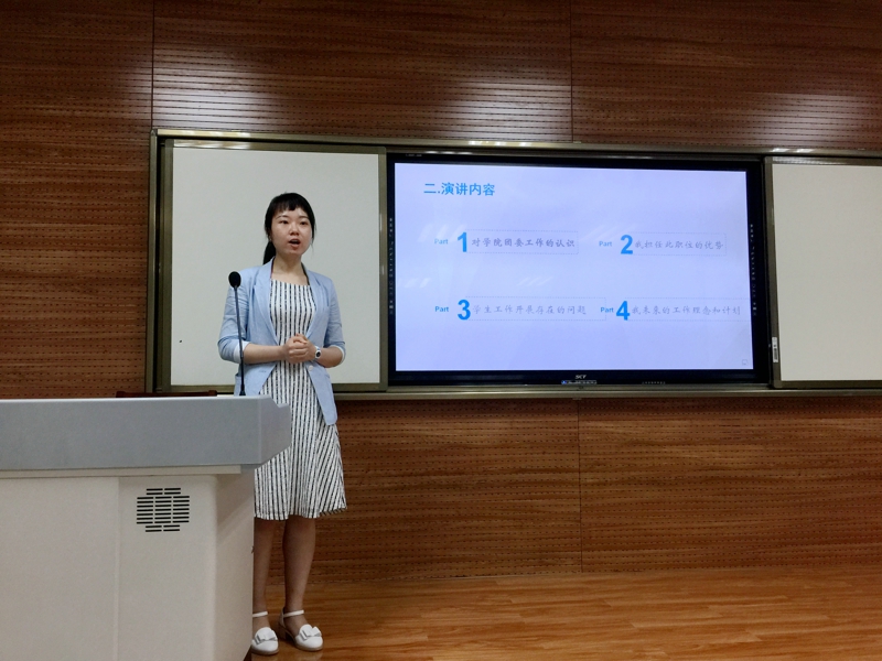 5月中旬,公司团委发布公开选聘院研究生会主要干部的通知,按照“优化结构、公平民主、公正公开”的原则,经过个人自荐、资格审查,近20位同学进入陈述答辩环节。在答辩开始之前,公司团委书记辛田对此次答辩的目的、要求和流程进行了简要介绍。随后,各位同学按照抽签顺序上台答辩,从个人任职经历、特长、工作理念、工作预想等方面做了展示。评委根据每个同学的具体情况有针对性地提出问题,进一步考察了同学们的应变能力。