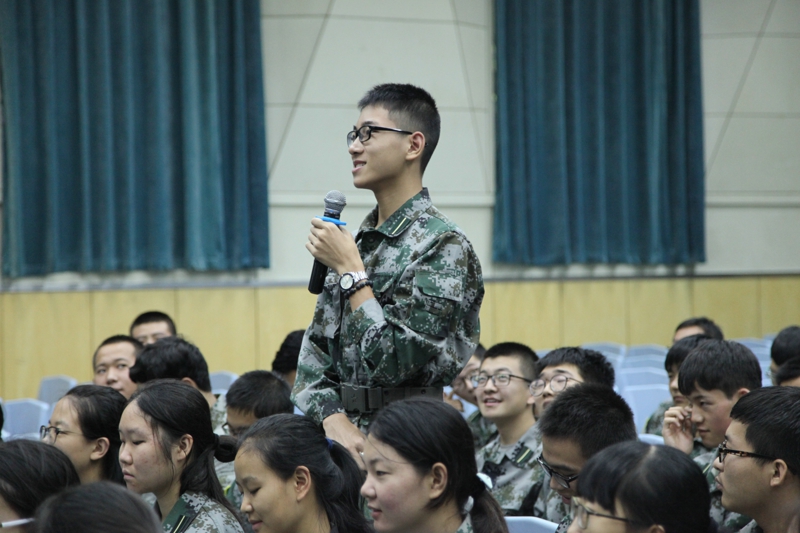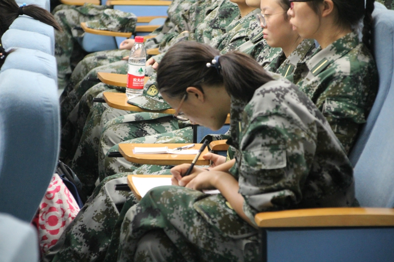 秋雨潇潇,金风瑟瑟,然而却没能阻挡住同学们认真接受教育的热情。在讲座中,胡教授看到同学们身着军装,不禁回想起当年自己在新疆生产建设兵团里参加劳动与学习的经历。他坦言,现在的学习环境与过去相比有很大改善,希望同学们能够珍惜当前的优越条件,争取毕业后能够有所成就。