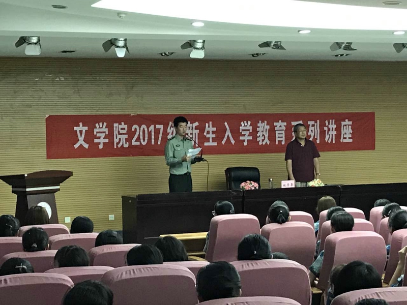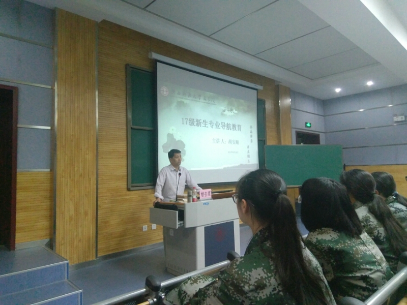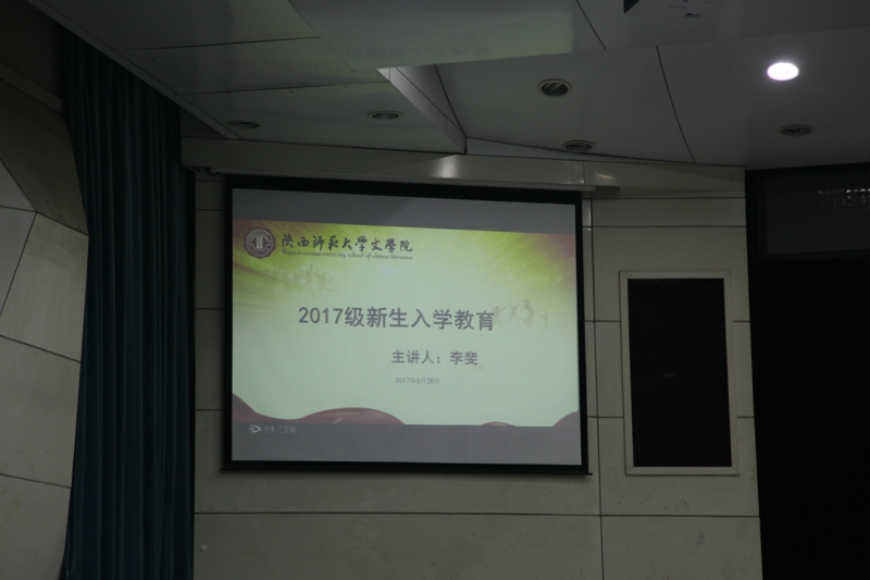 8月26日下午,申博SUNBET在申博SUNBET雁塔校区积学堂进行第一次2017级新生入学教育。此次入学教育由文公司党委副书记李斐主讲,2017级新生辅导员侯立主持。