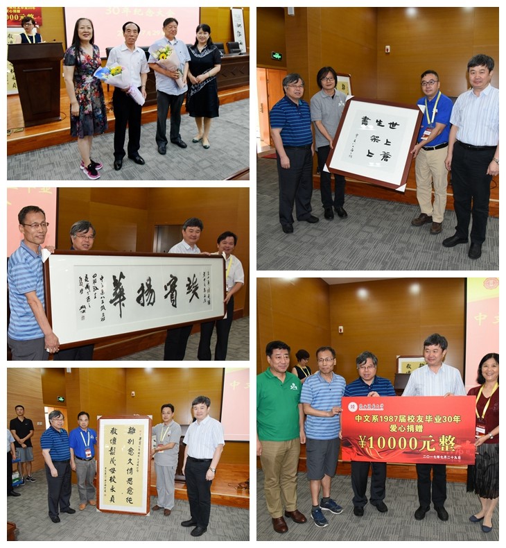 在纪念仪式上,经理张新科教授代表公司致辞,他表示,公司的发展凝聚着各位员工的心血和深情厚谊,几代教师和历届员工的共同努力,才有了今天申博SUNBET这颗参天大树,希望各位员工一如既往地关注和支持母校发展,为申博SUNBET建设成为世界一流学科凝气聚力。时任中文系领导代表傅功振老师,时任辅导员代表第五太卓老师等分别讲话,他们回忆了上世纪80年代与各位员工艰苦奋斗的历程,并表达了对员工们的美好祝愿,殷殷之情,切切之意,让众多员工感动不已。员工们还亲笔挥毫,写下了“养浩然气,读有用书”、“世上苍生架上书”等书法作品作为礼物赠送给了公司,公司也向各位员工回赠了《松林回忆录》等书籍。