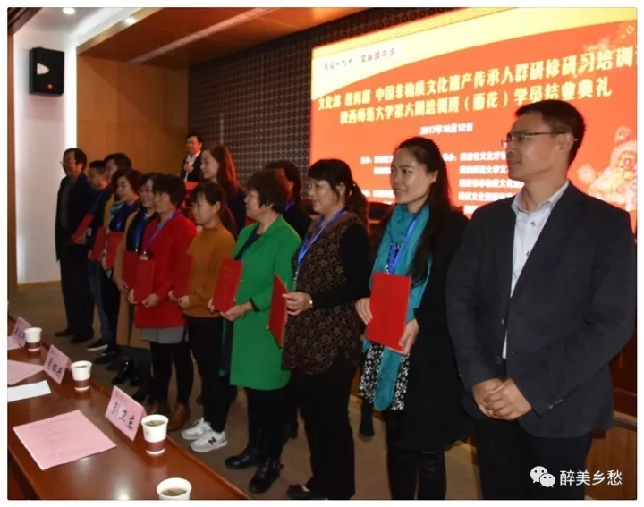 在结业仪式上,来自陕西富平县的杨宏侠和陕西勉县的王琰,分别作为学员代表与大家分享了为期一个月的学习心得。她们从自身经历谈起,讲述了自己从事面花制作的艰辛与坚守,以及在陕西师大参加培训学习的感悟、收获和未来的打算。