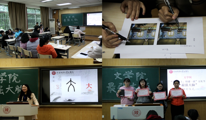 智力博弈,才华碰撞。最强大脑比赛设置运算能力大比拼、电话号码速记、电影台词正反说、古文字大师,火眼金睛找不同和短视频记忆六个环节。从不同维度和形式分别考察了参赛选手的口算心算能力,短时记忆水平,形象思维培养,古文字库积累与口头组织表达。让同学们在享受竞赛快感的同时,增强了勤奋学习,补充己知的意识和热情。