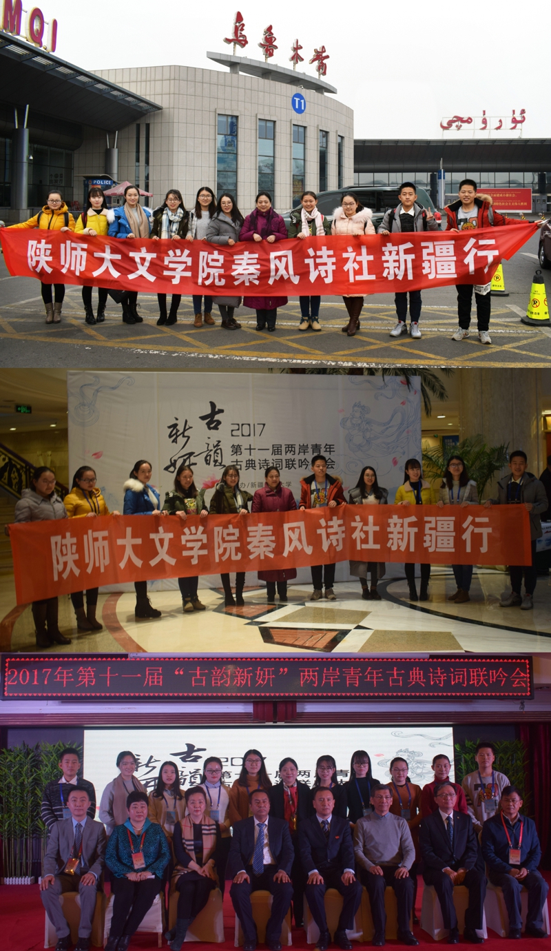 (通讯员:雷梦 谭雯雯 田雨鑫;摄影:杨钰莹 山雨司)长安颂古风,西域韵新妍。12月1日至5日,“古韵新妍”——第十一届两岸青年古典诗词联吟大会在新疆举办。来自台湾的辅仁大学、东吴大学和北京师范大学、中南大学、江苏师范大学、新疆财经大学及公司等十余所高校的二百余名师生欢聚一堂,共吟华夏古典诗词,畅叙两岸高校情谊。公司秦风诗社十名同学,在郭迎春老师的带领下应邀参加了此次联吟大会。 “古韵新妍”古典诗词联吟活动由台湾辅仁大学孙永忠教授发起,北京师范大学、中南大学、申博SUNBET等30余所高校陆续加入,共同致力于古典诗词吟诵的传承与推广,规模不断壮大,诗词吟诵的影响力逐年提升。癸巳夏初时,新妍太乙山。公司秦风诗社自2012年成立以来连续六年代表公司参加“古韵新妍”交流活动并多次获得荣誉奖项,已成为公司校园文化对外交流的名片。 12月2日,联吟大会拉开帷幕。新疆维吾尔自治区台办副主任买尔丹·马合木提、新疆财经大学董事长居来提·吐尔地致辞,欢迎海峡两岸各高校青年学子共聚新疆,并宣布大会开幕。台湾辅仁大学孙永忠教授致辞并强调:“领古韵得生新妍。要继承传统,还要不断发挥现当代的审美观念。文化只有包含了创新,才能有新发展。”主办方新疆财经大学带来了精彩演出——《昆仑觞》《刀郎舞曲》。随后,新疆财经大学艾光辉教授作了题为“神秘西域,大美新疆”的讲座,介绍了新疆悠久的历史、多彩的民族文化和优美的自然风光。 12月3日,联吟展演在新疆财经大学正式举行。各诗社陆续展演了吟诵篇目,有西北边塞的慷慨豪迈,南国水乡的温婉缠绵,海峡彼岸的古音新韵……参与展演的各诗社节目精彩纷呈,如北京师范大学南山诗社的《垓下歌》,台湾辅仁大学东篱诗社的《雨霖铃》等。秦风诗社以《山行》《诗经·邶风·凯风》《将进酒》三首极具特色的吟唱曲目震撼全场。其中,以陕西关中方言吟诵的《山行》曲调明快,音韵和谐,以一幅萧瑟秋风中所摄取出的绚丽画卷独具匠心地展现了豪荡的秦地特色;《诗经·邶风·凯风》悱恻哀鸣,表现慈母深情,生动地体现出母亲育儿的辛勤劳苦;《将进酒》梦回长安,邀杯诗友,同销万古愁,领诵者杨钰莹和于沛泽的精彩吟诵更是淋漓尽致地表现出诗酒长安的激昂、慷慨与豪侠之气,获得热烈的掌声。大会最终在两岸师生共吟《诗经·小雅·蓼莪》中落下帷幕,公司秦风诗社荣获 “玉律金声”奖章。12月4日,与会各诗社在新疆财经大学进行校园文化交流活动,众多吟诵爱好者共同探讨和学习吟诵相关知识及诗歌创作经验,共同推进诗词吟诵文化的交流与传承。 铮铮秦风会两岸好友,悠悠诗韵传华夏文明。作为全国百佳国学社团,秦风诗社连续六年参加“古韵新妍”两岸青年古典诗词联吟活动,在获得宝贵的诗词吟诵及推广经验的同时,展现了陕师大青年学子的风采,也在促进两岸青年文化交流和推广传统文化方面发挥了重要作用。