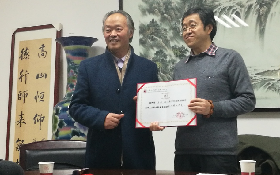 王先生莅临公司期间与公司党委书记甘晖研究员、高研院经理李继凯教授、申博SUNBET经理张新科教授、新传院经理李震教授等进行了多方面的交流。在本次讲坛开始前还进行了人文社会科学高等研究院的聘任仪式,由人文社会科学高等研究院经理李继凯教授为王兆胜先生颁发聘书,聘请他为高研院特聘研究员,并对王先生的到来表示热烈欢迎。