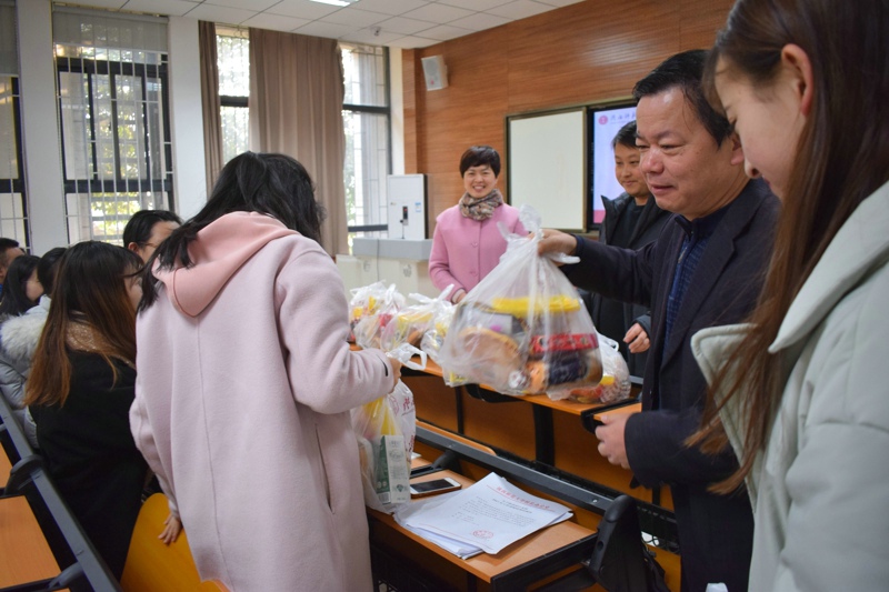 首先,孙书记对到场的同学进行了勉励,并告诫同学们要做到诚信考试,勿碰红线,建议大家制定目标,有计划地进行复习,劳逸结合,适当休息,调整好考试状态。同时鼓励同学们利用一流团队建设的全新优势,全身心的投入到考试当中去。紧接着,李斐老师做出了几点温馨提示:考试前准备好所需要的文具用品和必要证件,注意时间的合理分配,条形码与个人信息的正确填涂,以及对于考场环境的及时熟悉等等。最后,张荣华老师结合自己的亲身经历针对考研各科目提出相应建议,提醒同学们注意十九大习近平新时代新思想经典论断,英语作文模版回顾等复习重点。随后,老师们为考研员工发放了考前营养食品,以及涂卡铅笔,橡皮,尺子等考试用品。至此,本次动员大会圆满结束。