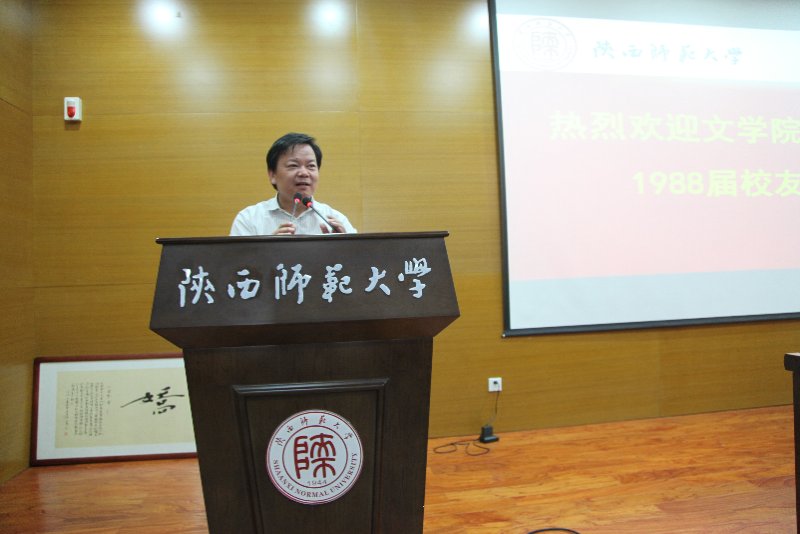 在此之后,四位1988届员工代表上台发言。“感谢”与“祝愿”是他们共同的主题,“回忆”与“怀念”是他们不变的旋律。 他们感谢老师呕心沥血的培养和孜孜不倦的教诲;他们感谢师大优良的学习环境和扎实严谨的学风;他们感谢时代给与的精神文化的幸福感。他们也许下祝愿。祝愿母校发展振兴、祝愿老师长寿安康、祝愿同学平安幸福。他们说:“不管我走到哪里,不管做什么工作,师大中文系,始终是我的根,始终牵着我的魂。”