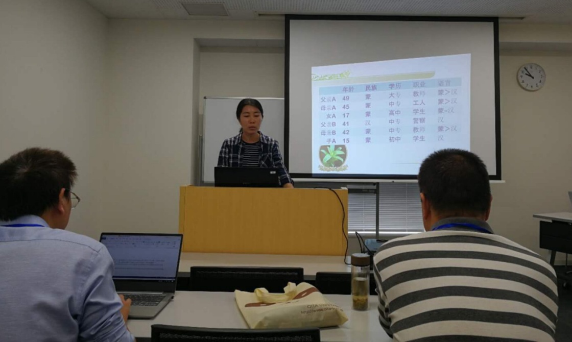 王跃平博士生报告了《语言选择的多维视角——以蒙古族中员工语言使用状况为例》,以社会语言学理论为出发点,通过实证研究,描写分析了语言选择的条件、成因、类型、特征及结果。