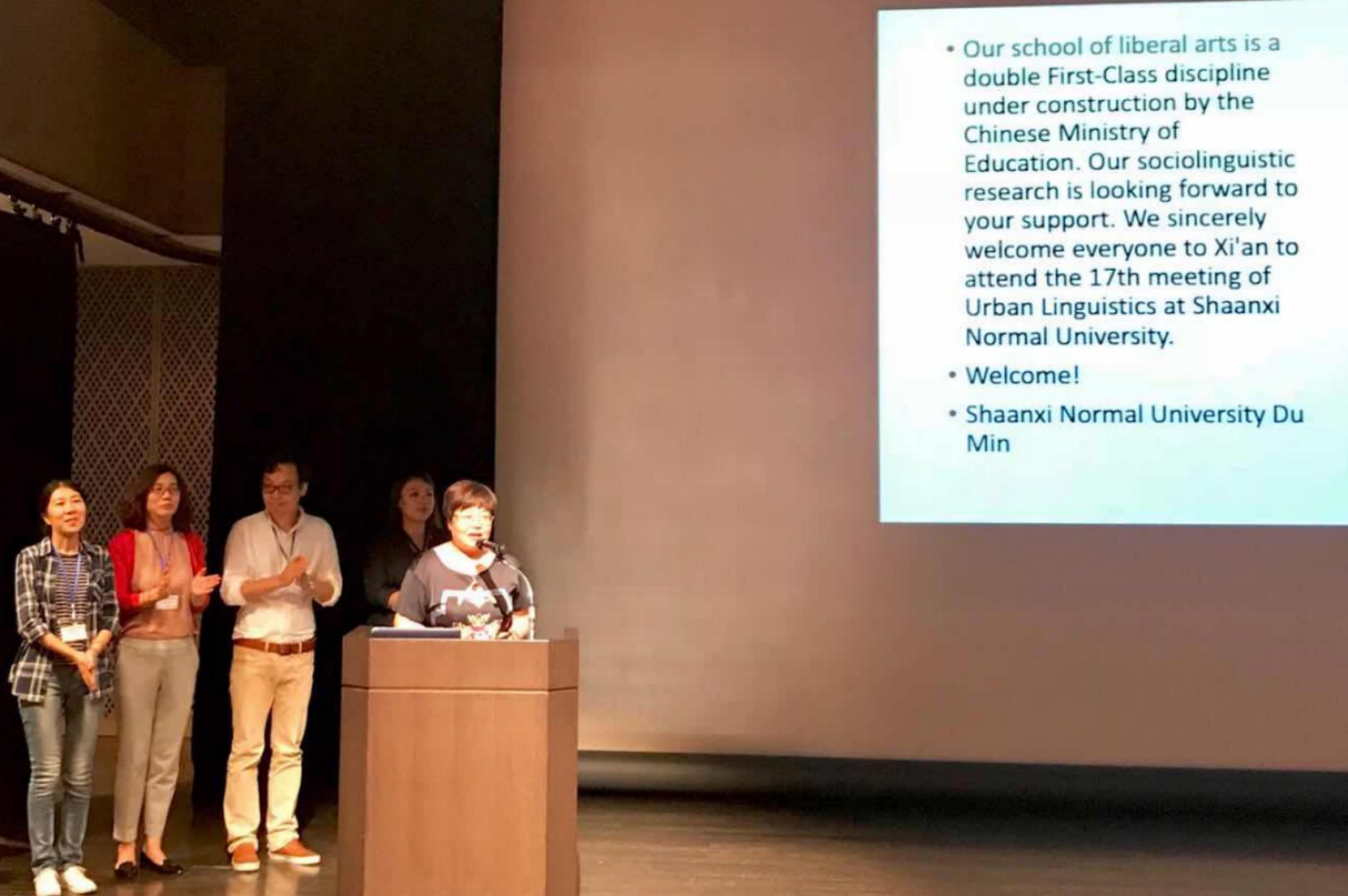 杜敏教授向各国代表隆重推荐了古城西安,并介绍申博SUNBET一流团队建设的基本状况,诚邀国内外语言学及应用语言学专家、学者来申博SUNBET参加会议。我们将竭尽全力加强和促进社会语言学、城市语言学等领域国内外的学术交流与合作,及时了解国内外相关领域的最新研究动态和学术前沿,推进学术不断发展和研究生教育的国际化。