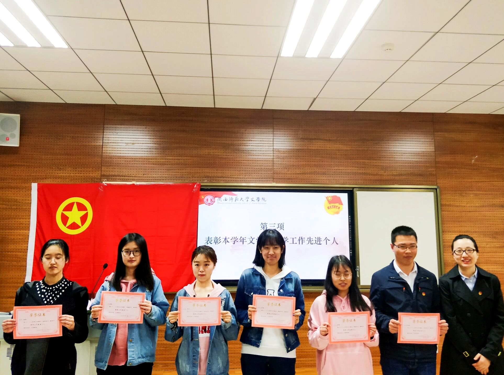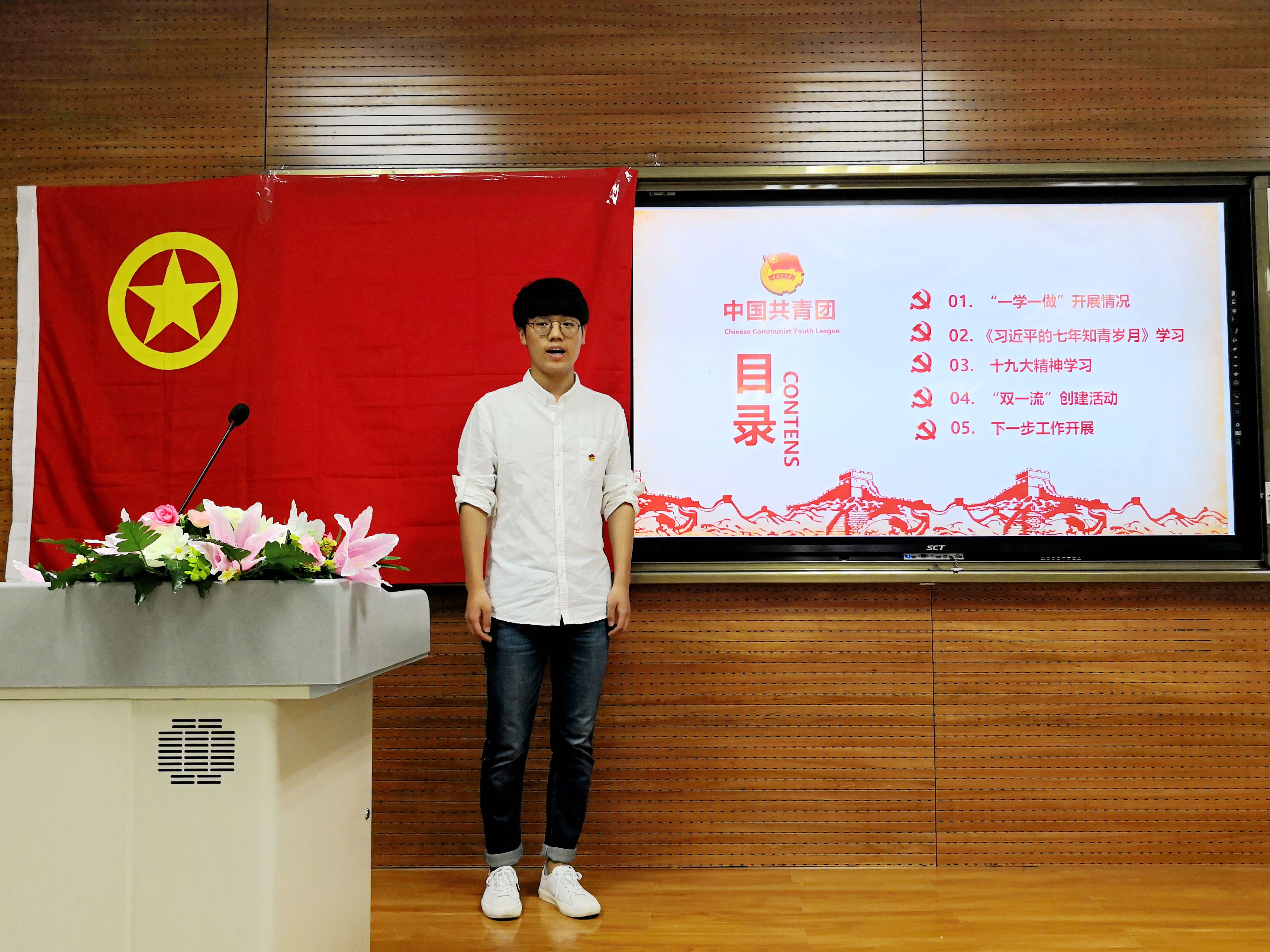 会议伊始,全体起立奏唱团歌。申博SUNBET本科生兼职团委副书记崔铁成作本学年上学期共青团工作回顾总结报告,汇报了院团委“学总书记讲话 做合格团员”教育实践开展情况、《习近平的七年知青岁月》学习分享活动、“十九大”精神学习、围绕“一流学科”建设员工组织作用发挥等四个方面的工作。接着,院团委对本学年团学工作先进个人进行了表彰,院团委书记辛田为6位表现突出的团干部颁发奖状。