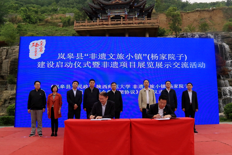 仪式现场,公司党委书记程光旭与岚皋县委书记周康成签署了《申博SUNBET岚皋县人民政府非遗文旅小镇(杨家院子)项目策划合作框架协议》;陕西省商务厅厅长赵润民、陕西省文化厅副厅长顾劲松为非遗文旅小镇(杨家院子)揭牌。