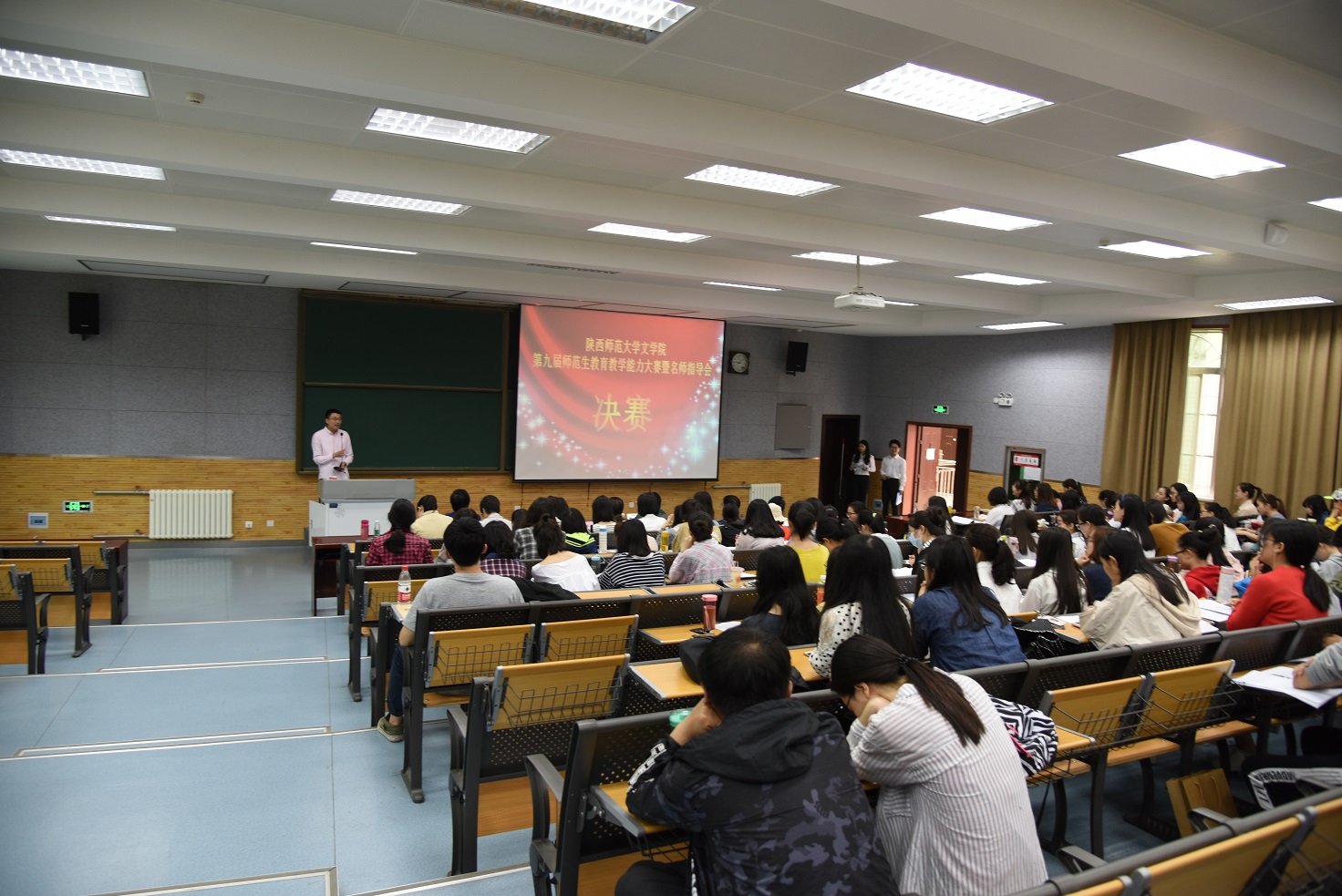 4月28日,申博SUNBET第九届公费师范生公司产品能力大赛决赛暨名师指导会在文渊楼4202成功举办。申博SUNBET特邀陕西省语文教育界名师西工大附中语文教研组组长、正高级教师徐殿东老师,西安高新一中语文教研组组长、高级教师贾建英老师,陕西师大附属万科中学高级教师、副董事长吴萍老师,西铁一中教务副主任、高级教师马宁老师以及公司语文学科教学论贺卫东副教授担任决赛评委和指导教师。