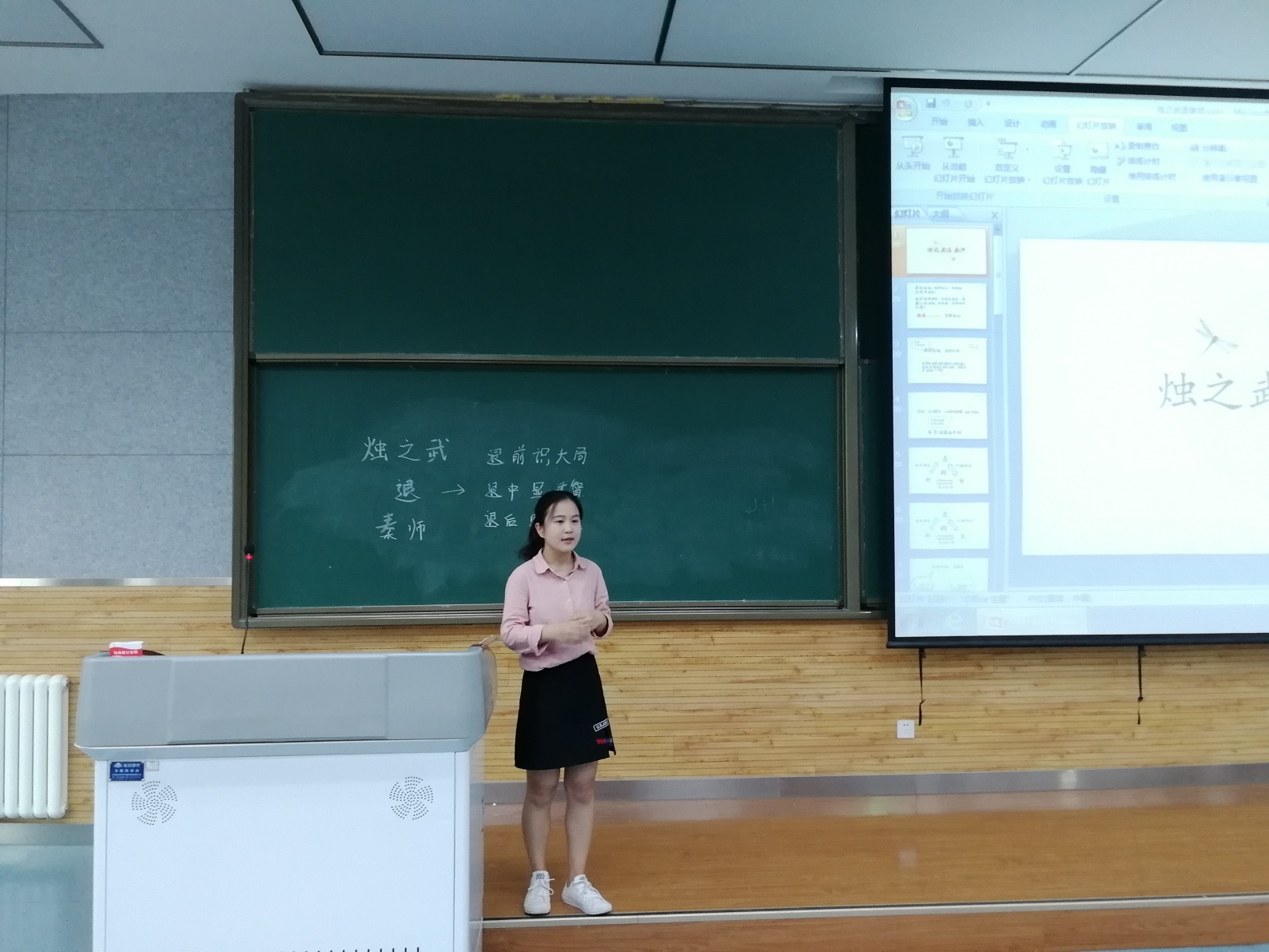 决赛环节分为3分钟即兴演讲,15分钟模拟授课,以及5分钟的现场问答。现场抽题,当场演讲,在短促的时间内完成演讲和教学任务,是对参赛选手的现场应变能力以及教学基本功的极大考验。15名经预赛选拔出的参赛选手,在短促的时间内,高效地完成了教学任务,充分地展现出了各自的教学风采。戏曲与教学的结合、流行音乐与古诗的碰撞、表演与讲授的兼容充分地展现了申博SUNBET师范生的才情,赢得了各位评委老师高度肯定。