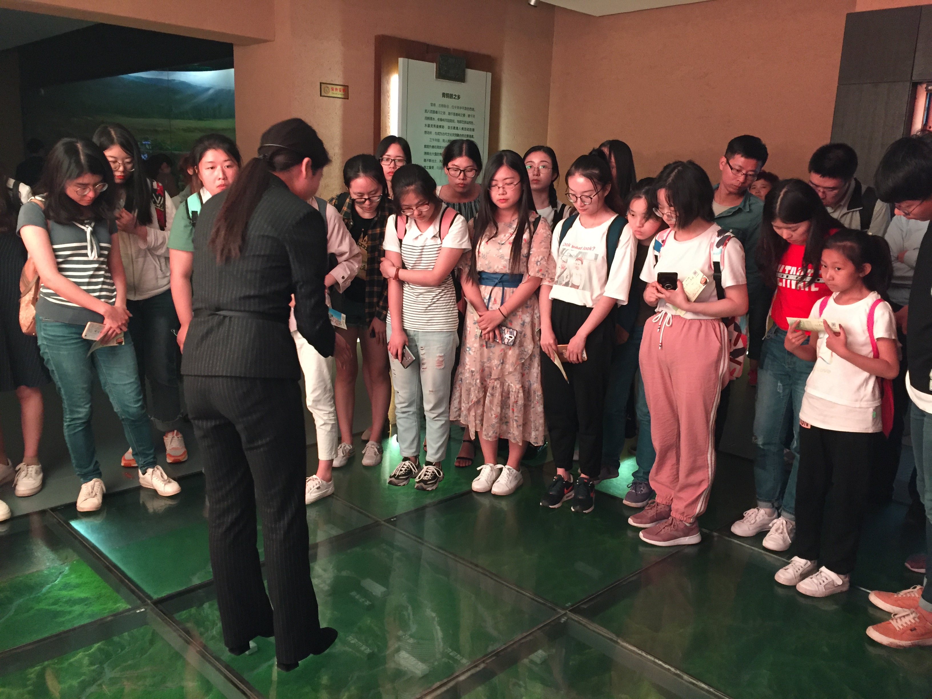 第二站为宝鸡先秦陵园博物馆。该馆属遗址性博物馆,由秦公一号大墓、陪葬车马坑和椁室陈列馆等组成。同学们首先参观了迄今为止中国发掘的最大古墓——秦公一号大墓的遗址,了解了秦景公墓室的大致结构。在参观椁室陈列馆时,同学们对周秦时代最高等级葬具“黄肠题凑”的耗材、工艺有了进一步的了解,对秦国奴隶制社会的真实面貌、历史文化,尤其是当时的丧葬制度有了更深的认识。秦公一号大墓在带给同学们震撼的同时,更唤起我们对于历史的回顾与反思。