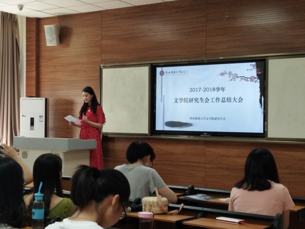 会议伊始,研究生会主席李雨竹进行了2017—2018年度工作总结。2017-2018年度申博SUNBET研究生会是具有历史开创性的一届。在辛田老师的指导下,研究生会屡创佳绩。据统计,本年度申博SUNBET研究生会共举办20余项活动,其中自主举办活动16项,特色活动5项。申博SUNBET作为本届校级研究生会主席团成员和校级社团丹青书画社的负责单位,积极承办校级活动,在广大师生中拥有良好的口碑和认可度。本届研究生会可以用八个字总结——“创新,专业,规范,大气”,所有活动均有博士研究生参加,使活动更具有学术性和全面性。最后,她作为研究生会主席对申博SUNBET领导老师和员工的大力支持表示了感谢。