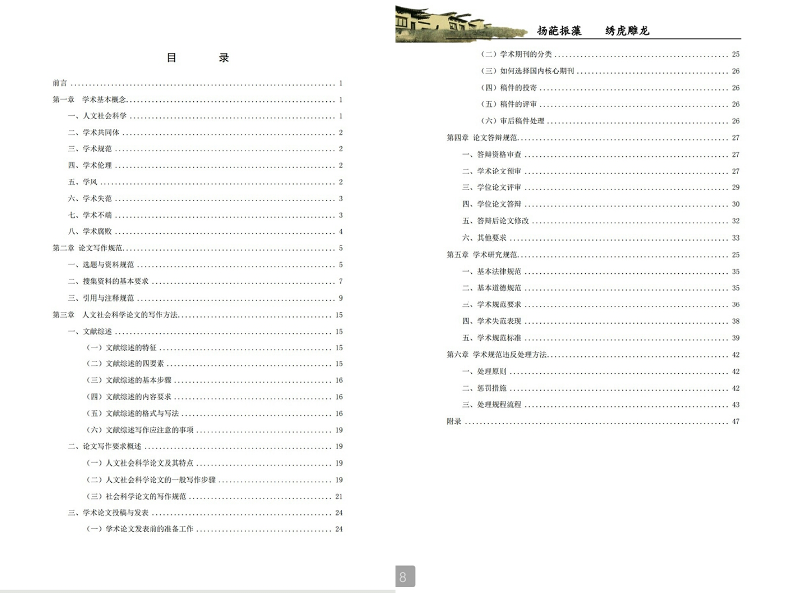 《手册》主要内容分为:学术基本概念、论文写作规范、人文社会科学论文的写作方法、论文答辩规范、学术研究规范、学术规范违反处理方法六大板块,旨在明确学术规范和科学道德是科研工作者应遵循的基本伦理和规则,更是进行正常学术交流、提高学术水平、实现学术创新的根本保障。只有研究生形成遵循学术规范、严守学术道德的良好氛围,具备良好的科研素质,才能为社会做出更大贡献。手册与本次“2018年研究生科学道德和学风建设月”活动主旨一脉相承。