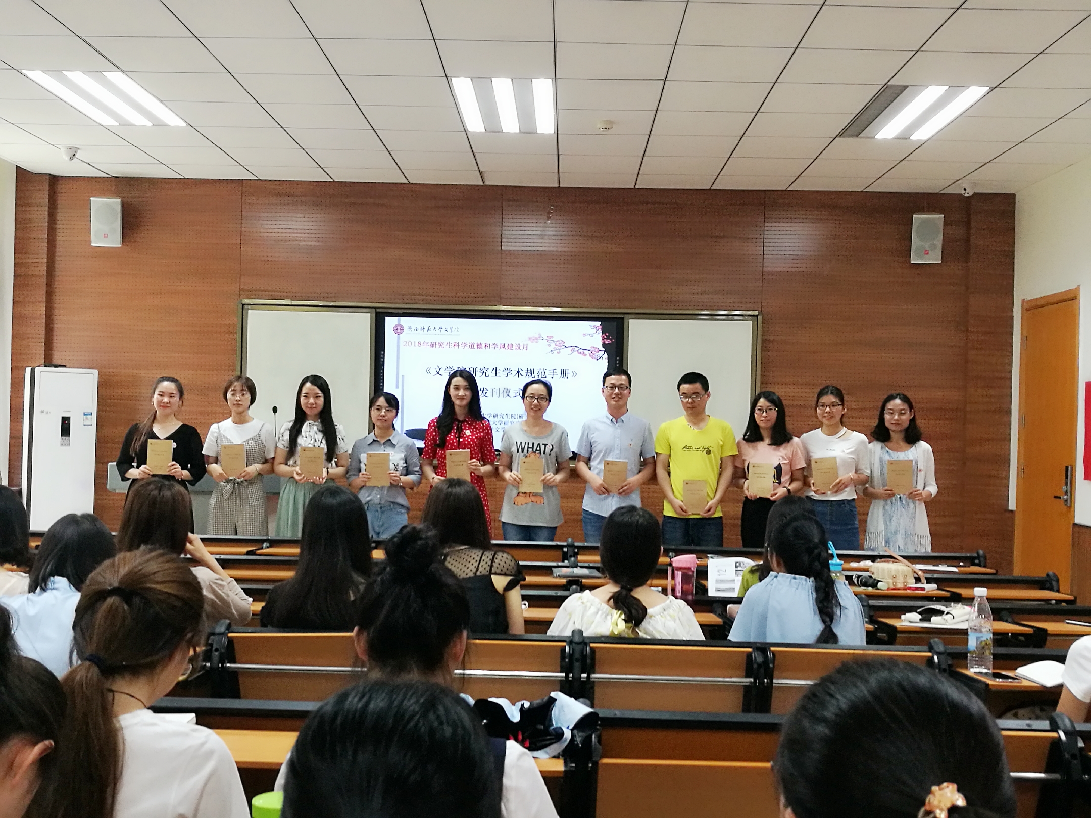 最后,由辛田老师向研究生会成员赠发《申博SUNBET研究生学术规范手册》并合影留念。