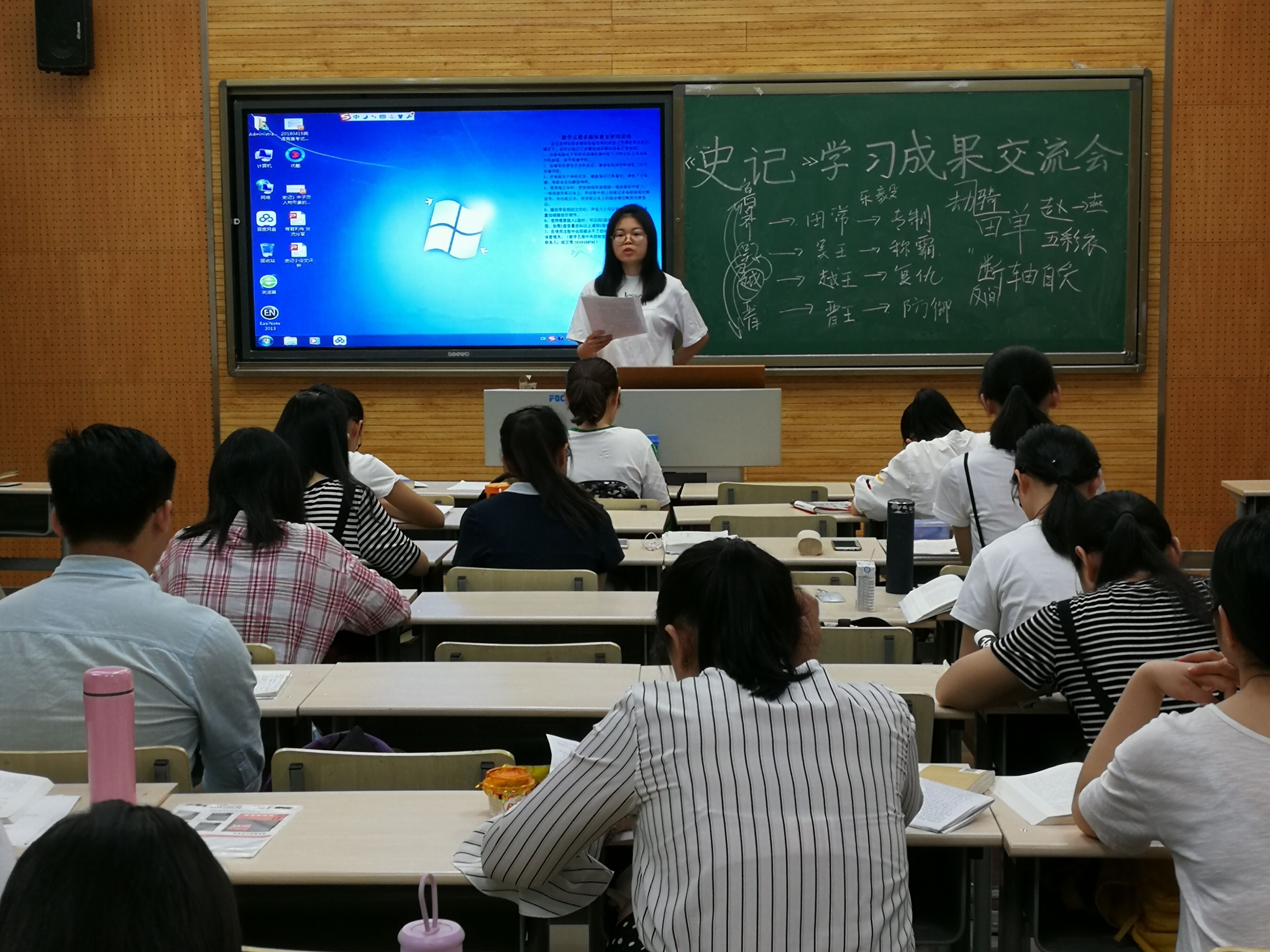 (通讯员 张心宇)2018年6月15日上午,申博SUNBET17级汉语言文学卓越班全体同学在教学五楼5209教室举行《史记》学习成果交流会。本次活动是在古代文学授课老师刘生良教授提议、策划、具体指导和亲自参与下进行的。为了保证本次活动有效开展达到预期目标,刘老师在《史记》课堂教学之学法传授和示范引导的基础上,于布置作业时还专门提供了他自己写的一篇下水文章《〈史记〉中张良的传奇人生和智者形象》供同学们参考。