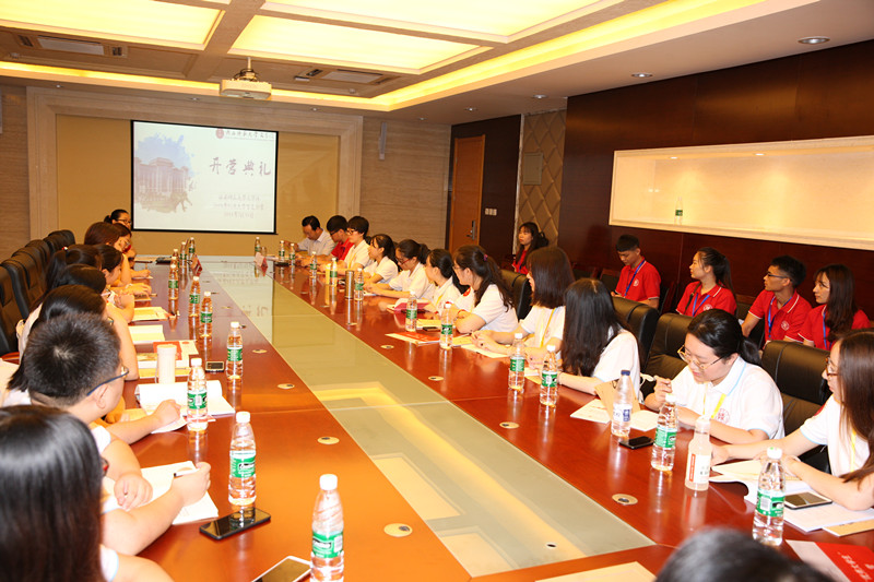 7月16日上午8点半,在申博SUNBET长安校区文汇楼A段409会议室举行了开营仪式。公司经理张新科教授、副经理杨晓斌教授、团委书记辛田老师和研究生辅导员程海峰老师出席了开营仪式。