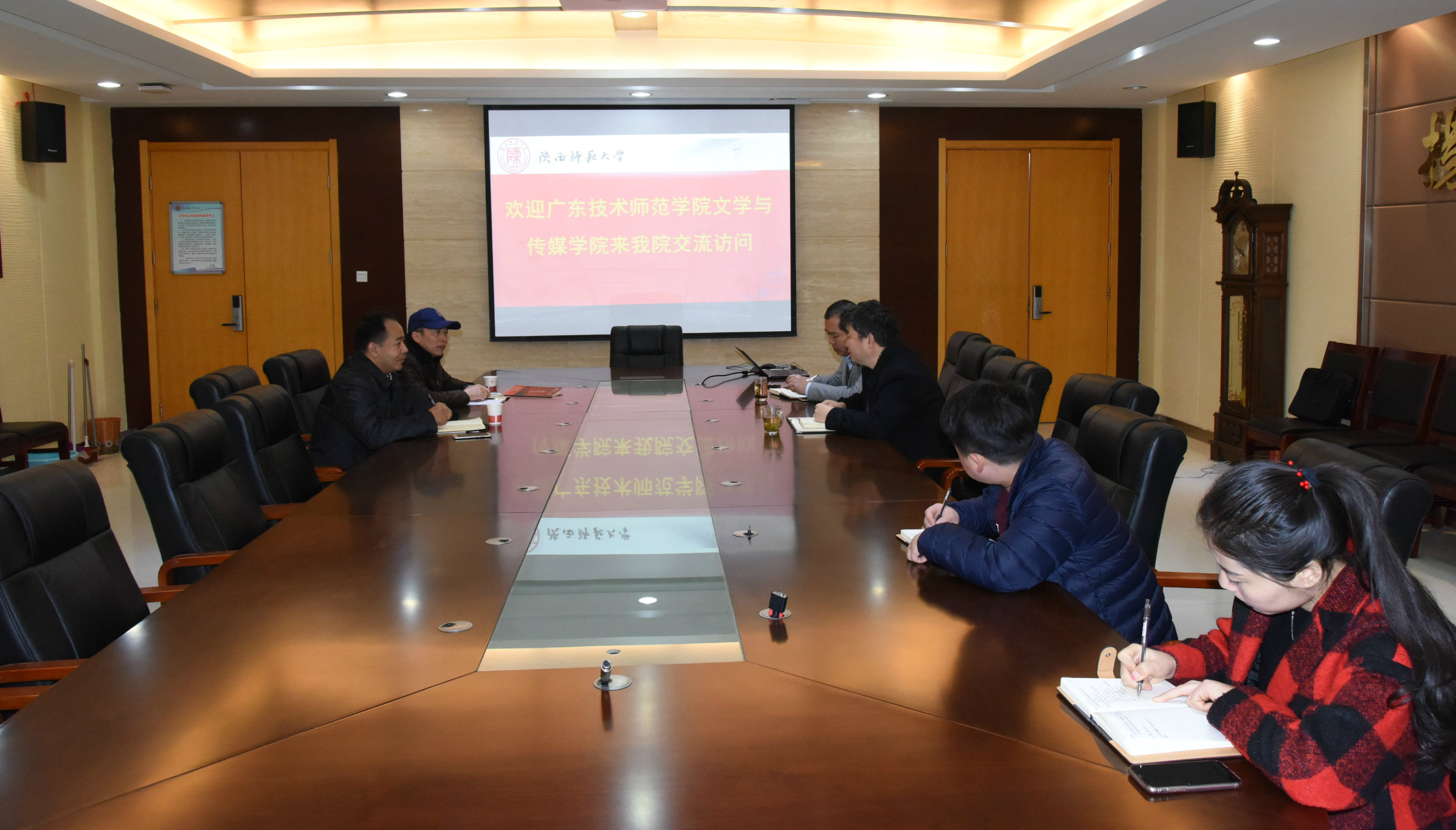 苏仲乐副经理首先代表公司对周卫忠和白崇的来访表示欢迎,并简要介绍了公司在人才培养、教学管理、团队建设以及团队建设等方面基本情况。周卫忠谈到,此行主要是为了学习陕师大申博SUNBET在团队建设与科研工作方面的先进经验,他重点介绍了广东技术师范公司的发展历史与中文学科发展背景,并强调了公司目前发展遇到的困境,指出向兄弟院校学习交流的迫切性,希望能不虚此行。