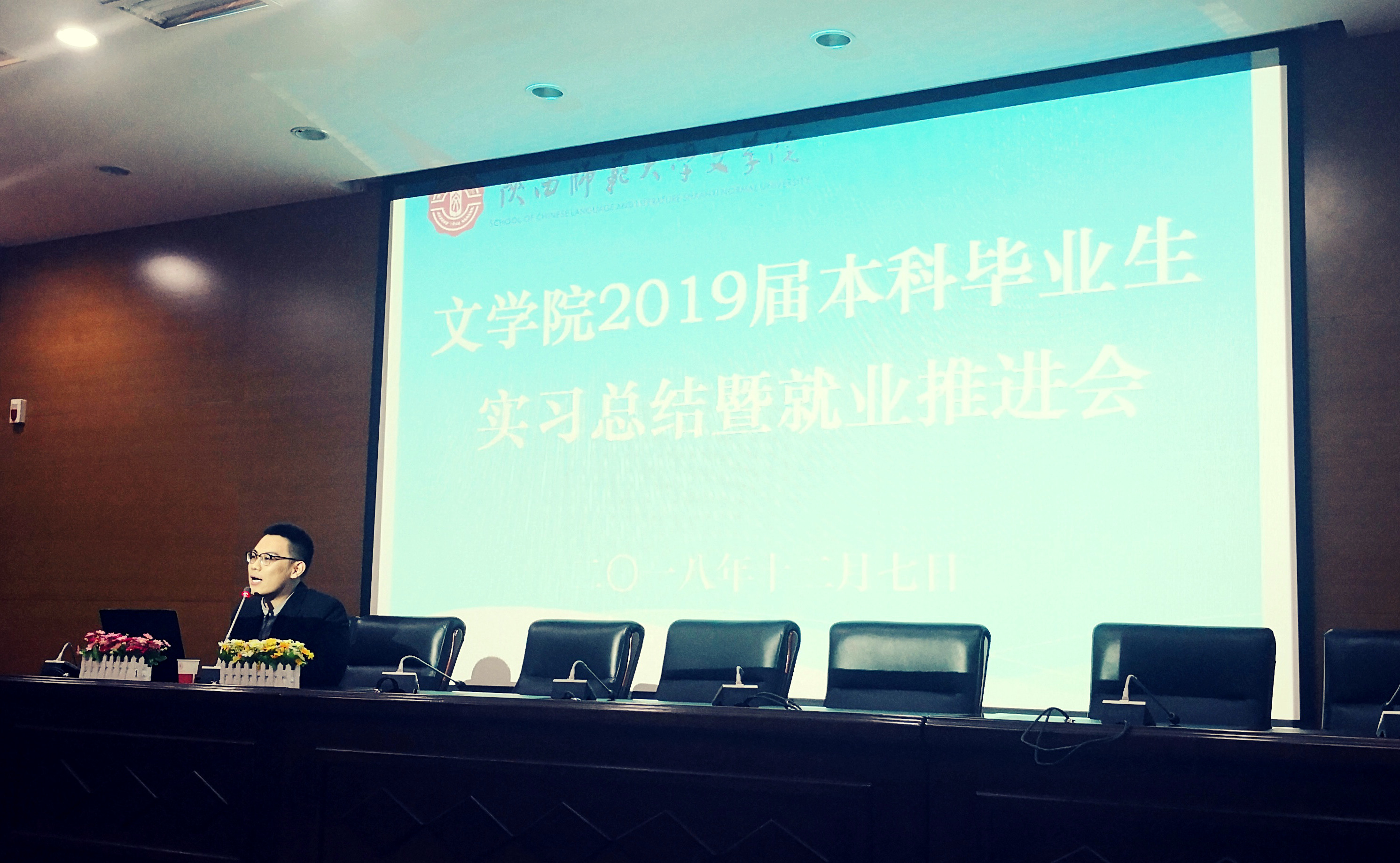 实习总结会后,两位已就业毕业生代表分享就业经验。申博SUNBET附属中学吴桐菲老师以“润物无声 砥砺前行——谈我的教学困惑与解决方法”为题,分享了工作5年的经验和体会。她鼓励大家,不要为了工作而工作,要及时反思与总结,向优秀的前辈学习,努力赢得锦绣前程。新东方西安语文高中部主管陈曦老师结合自己求职就业的亲身经历,从多角度就业和面试技巧两方面向大家分享了相关经验。他建议大家,先就业再择业,在面试前做好充足的准备,根据社会的岗位需求以及自己专业和能力去找适合的工作岗位。