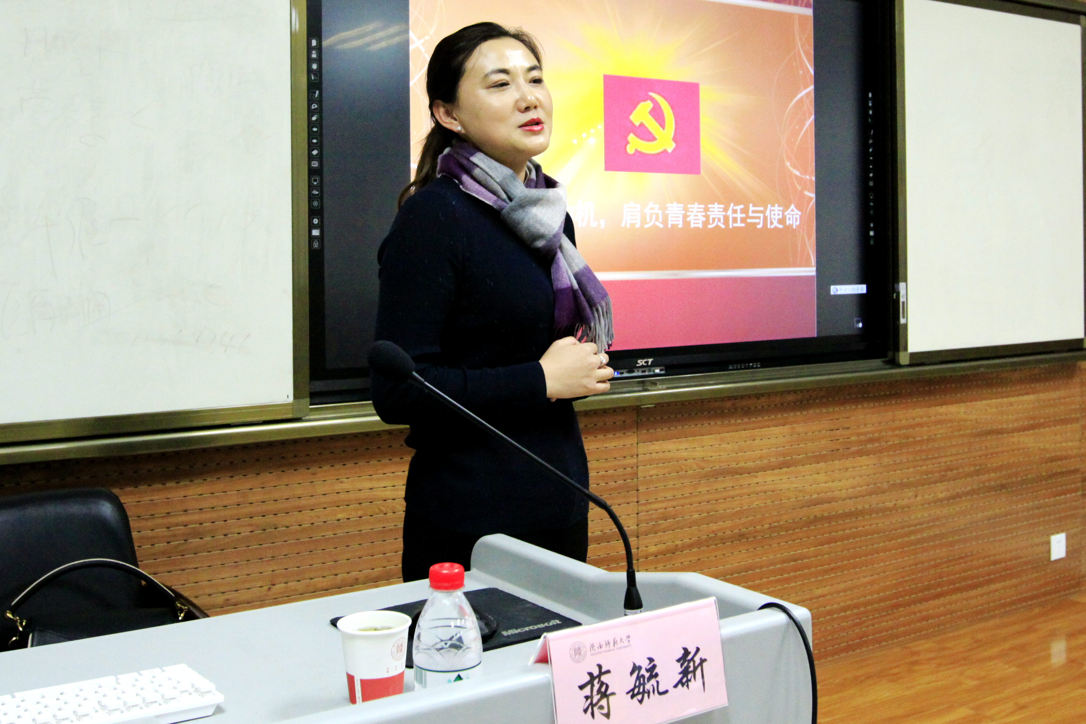 11月23日,党委学工部(员工处)副部长(副处长)蒋毓新老师作“端正入党动机,肩负青年责任和使命”报告,分析和解读了不同入党动机之间的差别,希望同学们牢记共产党人的初心和使命,端正入党动机。