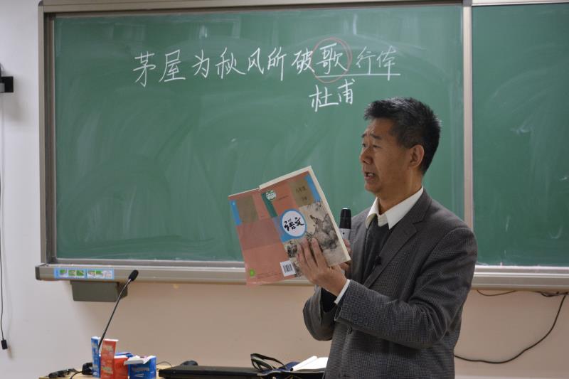 第一节课是程翔老师讲授的《茅屋为秋风所破歌》。程翔是教育部“国培计划”专家库首批专家、教育部教师教育课程资源专家委员会委员、北京市语文特级教师,在中学语文阅读教学、写作教学、教材建设等方面有较深造诣。他的《茅屋为秋风所破歌》教学,引导员工在朗读中通过重点字、词的解析来感受诗歌中的感情,领悟杜甫的家国情怀。程翔老师上课随心所欲而不逾矩的教学方式,以及看似不经意而实有用心的教学设计,使得同学们不仅重新对《茅屋为秋风所破歌》有了深刻认识,也见证了一位教师的最高境界,不禁心向往之。