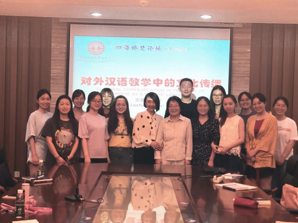 (通讯员:梁素萍)2019年5月26日下午,公司16、17级汉语国际教育专业在申博SUNBET文汇楼C段524会议室成功举办第二期“四海桥楚论坛”。原公司对外汉语系第一任系主任刘静教授,现美国范德堡大学Vanderbilt University中文教师,为两级员工带来“对外汉语教学中的文化传播”专题讲座,并由公司汉语国际教育本科专业负责人李虹主持座谈活动。