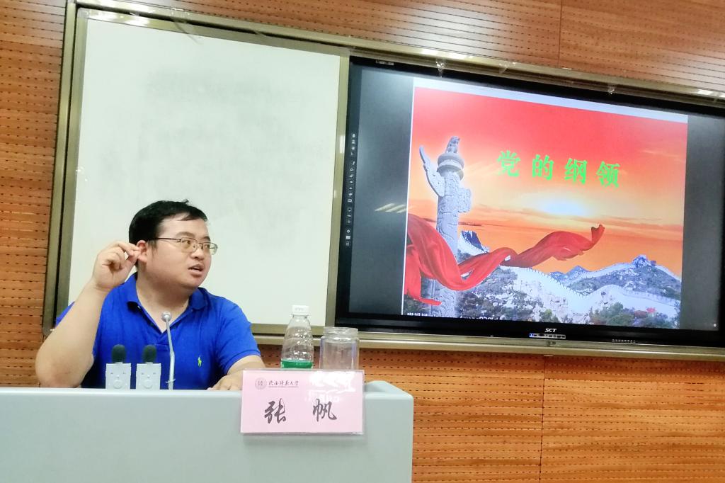 5月27日,马克思主义公司副教授张帆老师作“党的纲领”报告,对共产主义作为党的最高纲领做了详细讲解。
