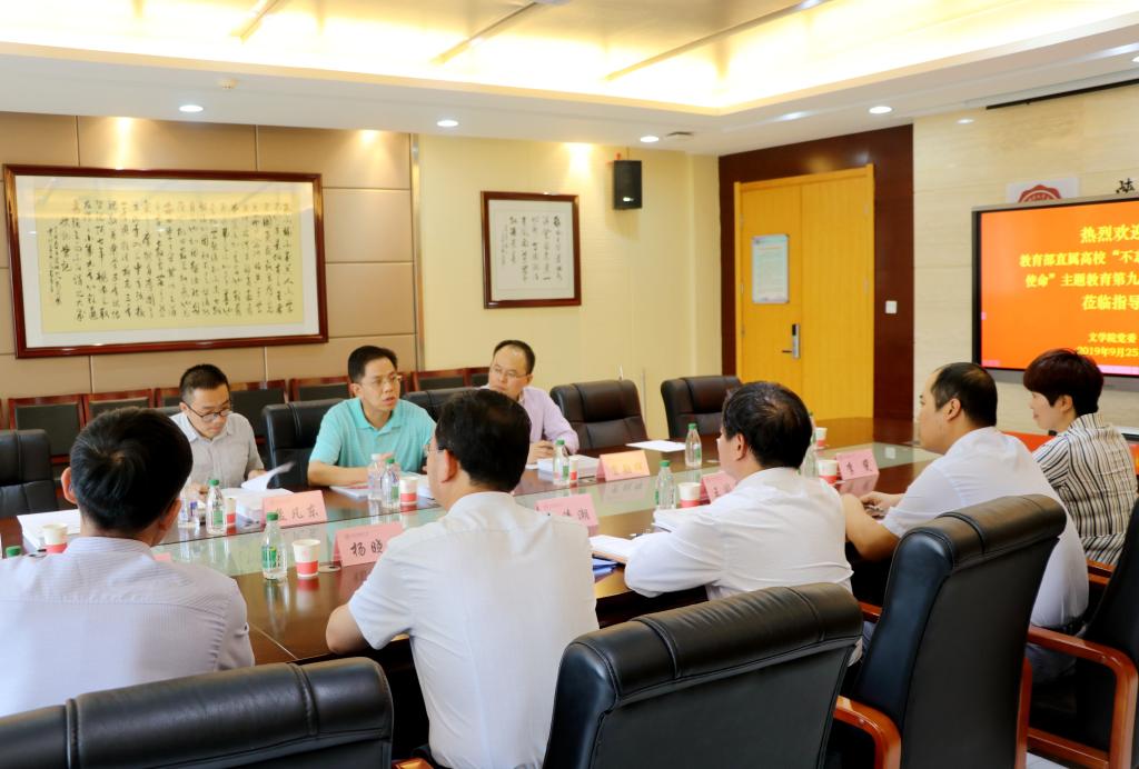 9月26日下午2点,教育部直属高校“不忘初心、牢记使命”主题教育第九巡回指导组副处级干部黄少成、联络员孟凡东莅临申博SUNBET检查指导主题教育工作开展情况。公司党委组织部正科级秘书贾颖辉陪同。文公司党委书记孙清潮,党委副书记李斐,副经理杨晓斌、王同亮,党委委员赵学清,党委秘书辛田,办公室主任张荣华参加座谈。