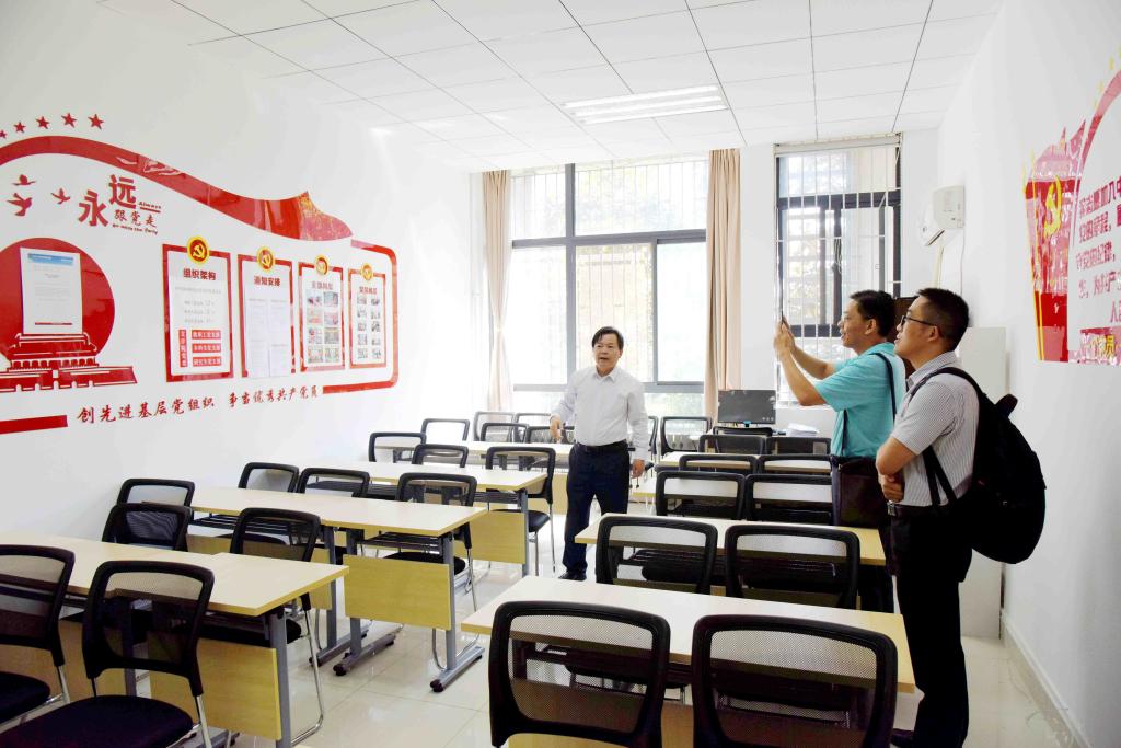 黄少成、孟凡东参观了文公司党员活动室、心理活动室、文心阁、墨宝室和公司文化墙,对公司相关工作进行了询问了解,随后在215会议室召开了座谈会。会上,孙清潮书记就公司“不忘初心、牢记使命”主题教育开展、全国党建标杆院系建设、“课程思政”推进以及目前存在主要问题等向第九巡回指导组成员做了汇报。