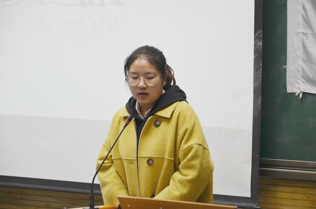 田甜同学与同学们分享了自己关于青年红色筑梦之旅赛道的参赛经历,着重强调了将志愿服务活动转化到创新项目的过程。她表示,比赛是锻炼自身能力的重要方式,希望同学们把握机会,踊跃报名,积极参与到科创类竞赛中去。