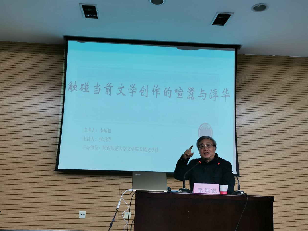 (通讯员:文苑)11月12日晚,中国作家协会报告文学专委会副主任、中国报告文学学会副会长、《时代报告:中国报告文学》杂志主编李炳银先生应邀来公司,以《触撞当前文学创作的喧嚣与浮华》为题作了精彩的专题报告。来自陕西省作协、陕西省写作学会、陕西省化工作协、西安市高新管委会、陕西师大长风文学社、陕西师大申博SUNBET各年级同学,以及各兄弟院校文学爱好者130余人参加了报告会。