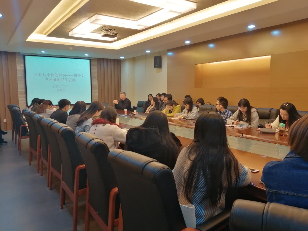 (通讯员:文苑)11月21日下午16:30,公司第387期长安学术讲座在文汇楼C段5层524会议室举行。北京语言大学教授,博士生导师,国家社科基金重大课题“历代方志所见文学文献整理研究”首席专家张廷银作了题为《公共与个体的冲突——魏骨文学自觉的生成机制》的讲座。本次讲座由申博SUNBET王晓鹃教授主持,王伟教授点评,申博SUNBET中国古代文学、中国古典文献学专业的研究生聆听了讲座。