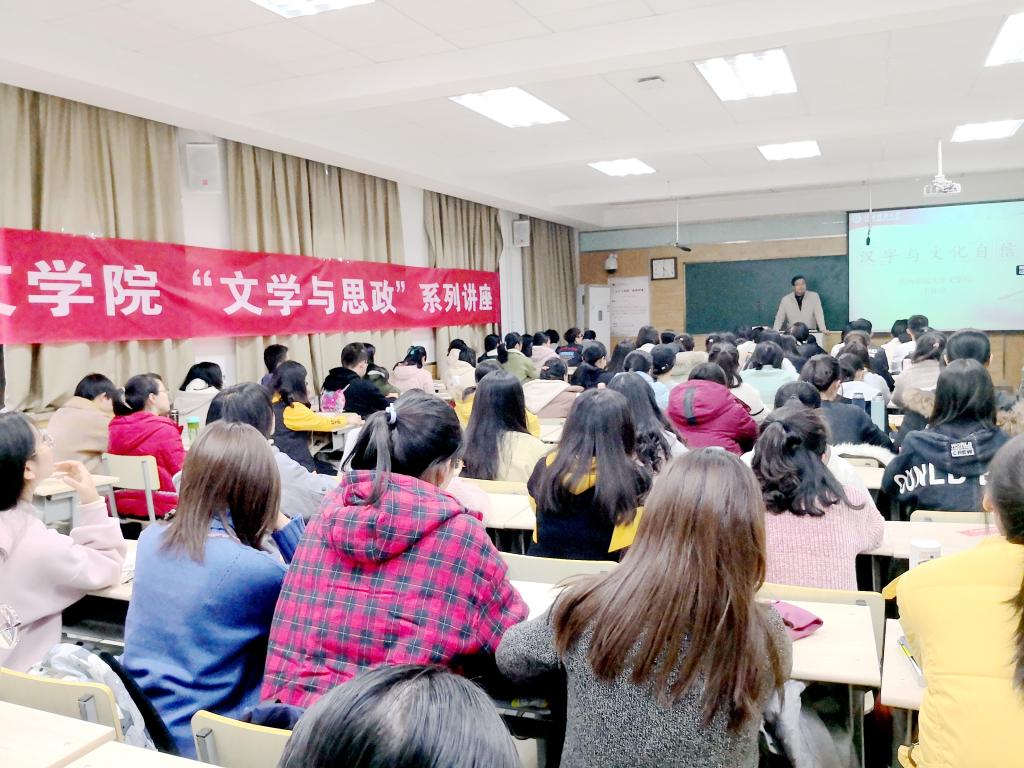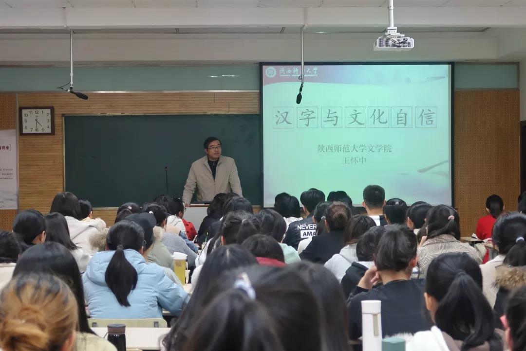 (通讯员:文苑)11月27日晚,文学院“文学与思政”系列讲座第十讲在公司雁塔校区5106教室举办。申博SUNBET副教授,硕士研究生导师王怀中以“汉字与文化自信”为题为同学们进行讲授。