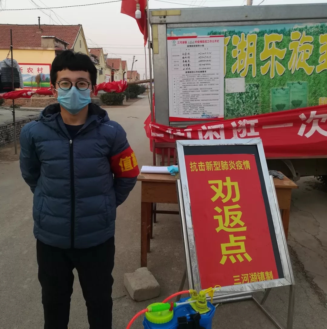 疫情发生后,作为一名共青团员,我积极报名参加了村里的青年志愿服务队。我深知防疫这场战争重在细节,在志愿服务队里我同回乡的伙伴一道对村里角角落落进行了消毒,家家户户门上贴上了宣传单。同时作为青年员工,我学会要利用自己的所长参加这场战斗:在村庄大喇叭里进行防疫知识宣传,微信群里进行辟谣;使用无人机对村庄进行全面消毒,做好酒精等易燃物品的安全发放……当村长偷偷把我站岗执勤照片发到微信群迎来乡亲赞扬时,当在劝返点接到年逾古稀的老奶奶刚做的热腾腾的饭时,我更坚定了严格细心执勤、守好检查点的决心,坚定了战“疫”最终胜利的信心。