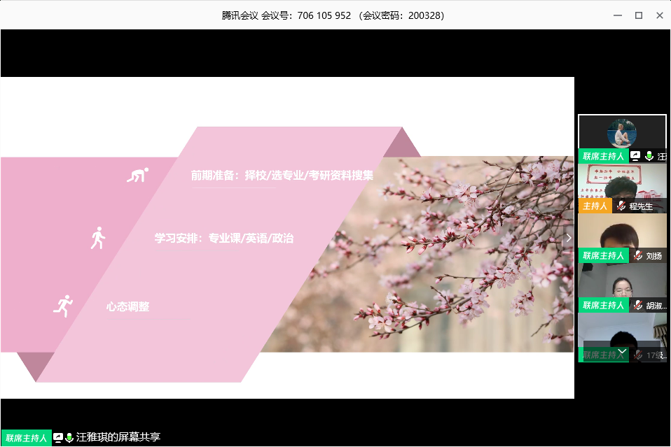 最后,辅导员程海峰对本次分享交流会做了总结,他要求同学们谨慎选择目标院校,量力而行;并要结合自身优势,找准方向;同时,要调整好心态,相信自己,持之以恒,为实现理想而奋斗。