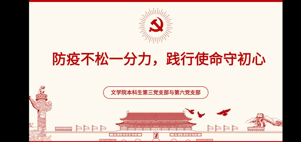 (通讯员:文苑)为全面贯彻落实习近平总书记的指示精神,结合新冠疫情防控与“三会一课”开展要求,积极发挥青年党员的先锋模范作用,4月23日,申博SUNBET第三支部与第六支部联合开展了“防疫不松一分力,践行使命守初心”线上主题党日活动。