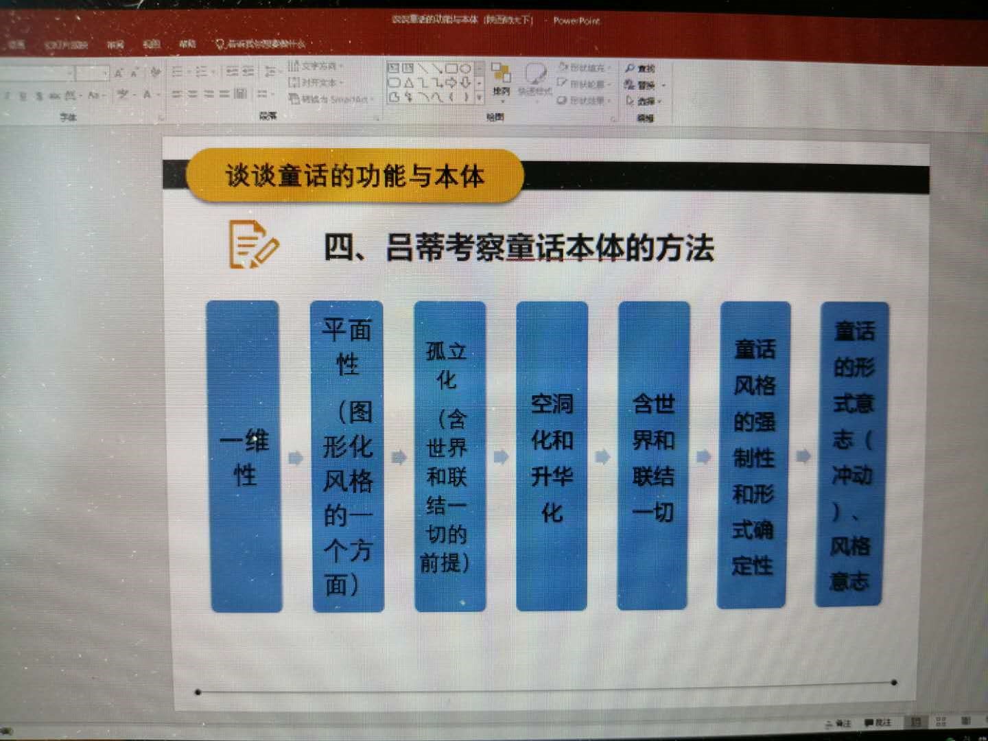 本次讲座第一环节是户晓辉研究员对本次主题内容的讲授。他从个人的学术探索谈起,由此展开对20世纪民间童话两大范式研究的讲授。讲座由中国“童话”名称的词源考证开始,追溯作为体裁名称的“童话”在欧洲的发展历程,并梳理了19世纪和20世纪童话研究的不同侧重点,经过世纪的交叠对童话的考察已由起源和涵义转向功能和本体研究。户晓辉研究员在童话的功能研究层面,主要介绍了精神分析学派的代表人物及其相应成果,而在童话的本体研究层面则重点介绍了瑞士童话研究者麦克斯·吕蒂考察童话本体的方法。户晓辉研究员特别指出,吕蒂的成果是童话研究链条上不可缺少的一环,其独创的童话现象学立足于人类生存的实践功能,通过童话的本质通向人的本体存在。