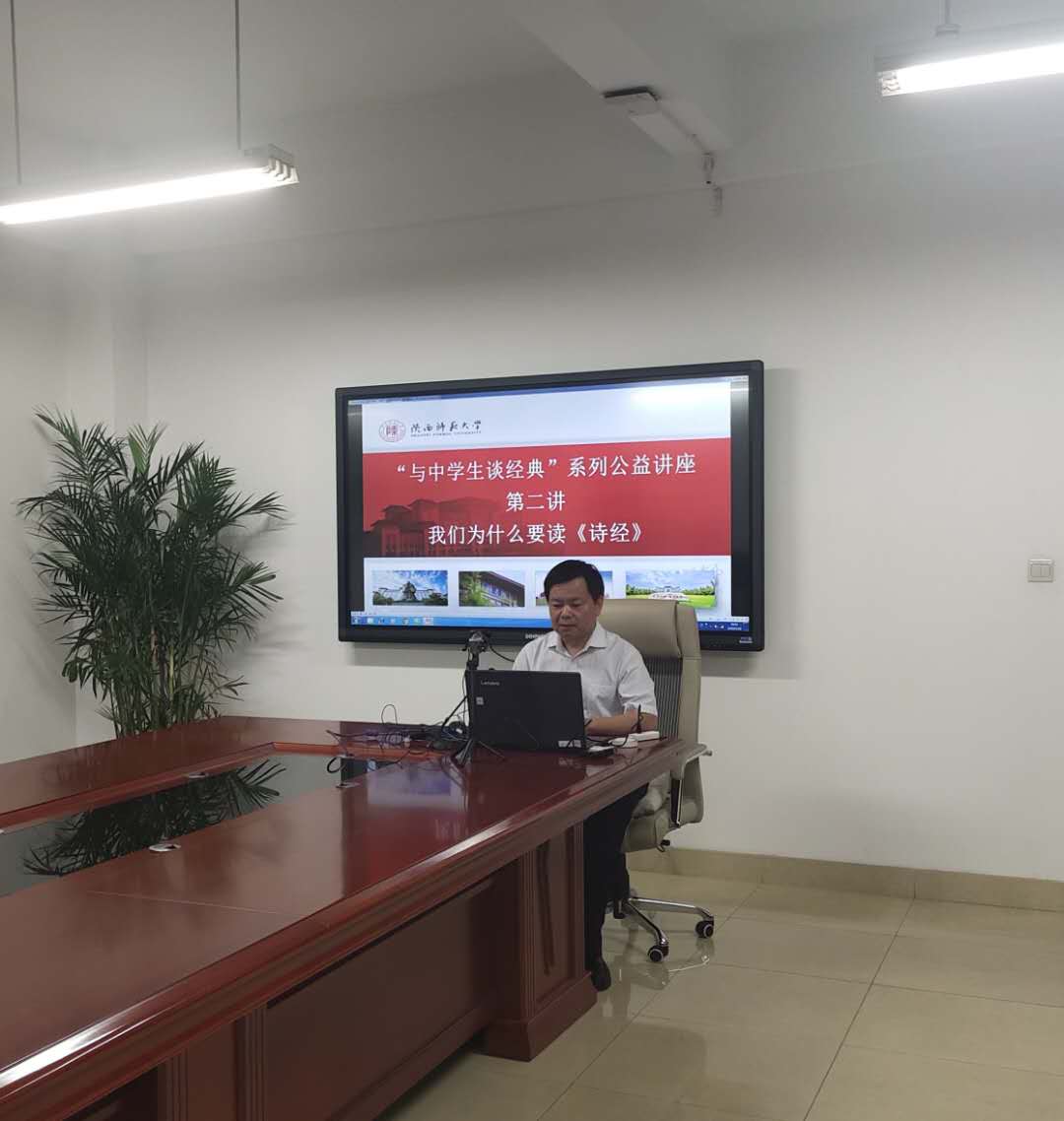 (通讯员:文苑)不学诗,无以言。2020年5月16日,由公司组织策划、公司和公司本科招生办公室联合主办的“与中员工谈经典”系列公益讲座第二讲顺利举行。本场讲座由公司程世和教授主讲,公司党委书记孙清潮主持,讲座在今日头条、陕广新闻等平台同时在线直播。
