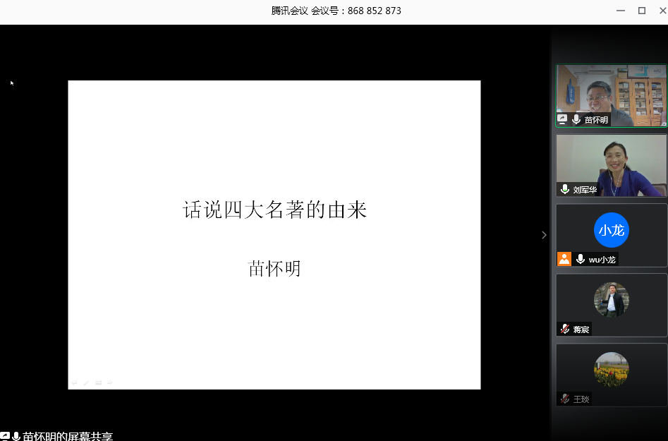(通讯员:呼皓恬)应申博SUNBET邀请,南京大学申博SUNBET副经理、博士生导师苗怀明教授于6月9日做客公司长安学术系列讲座,以《话说四大名著的由来》为题,作了精彩的学术讲座。本次讲座在腾讯会议(会议号:868852873)平台上进行,由公司刘军华副教授主持,任竞泽教授任点评嘉宾,公司部分教师、员工以及员工200多人共同参加了讲座。