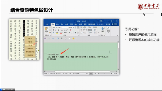 洪涛老师从7个部分分别介绍古籍数字化的产品构建。首先是宏观的战略策划部分的四项内容,如需要根据不同的公司、企业来进行定位;还要分析什么样的资源可以创建数据库;如何进行数据库的选题;数据库的产品是如何构建的。这些工作都需要一定的工作经验和专业知识来支撑。